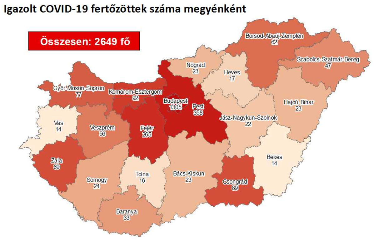 Békés és Vas megyében van a legkevesebb (14-14) fertőzött Magyarországon.