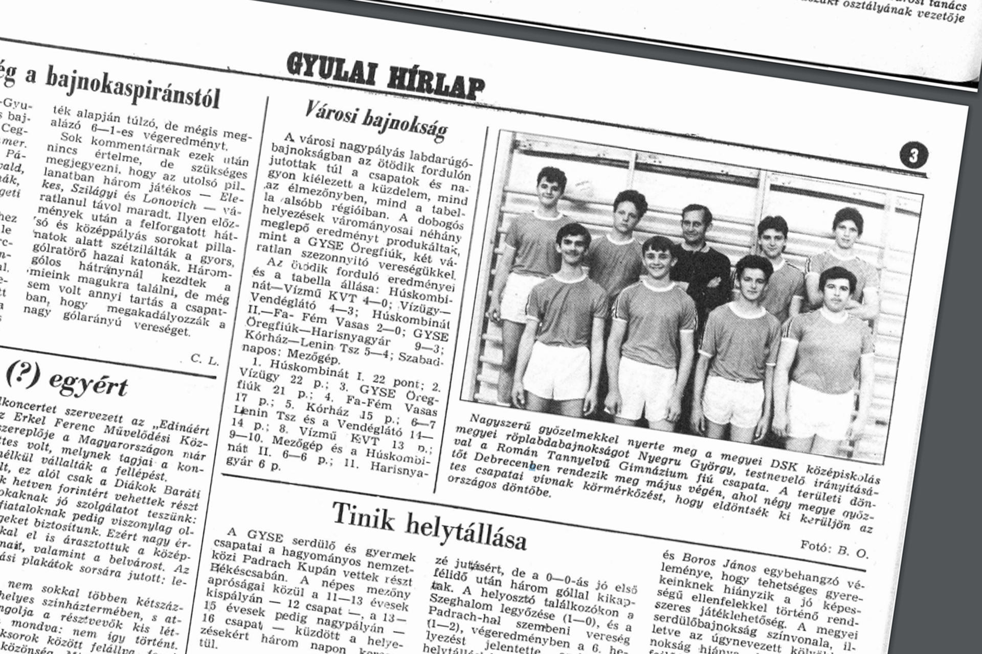 Nagyszerű győzelmekkel nyerte meg a megyei DSK középiskolás megyei röplabdabajnokságot Nyegru György testnevelő irányításával a Román Tannyelvű Gimnázium fiúcsapata. A területi döntőt Debrecenben rendezik meg május végén (…)