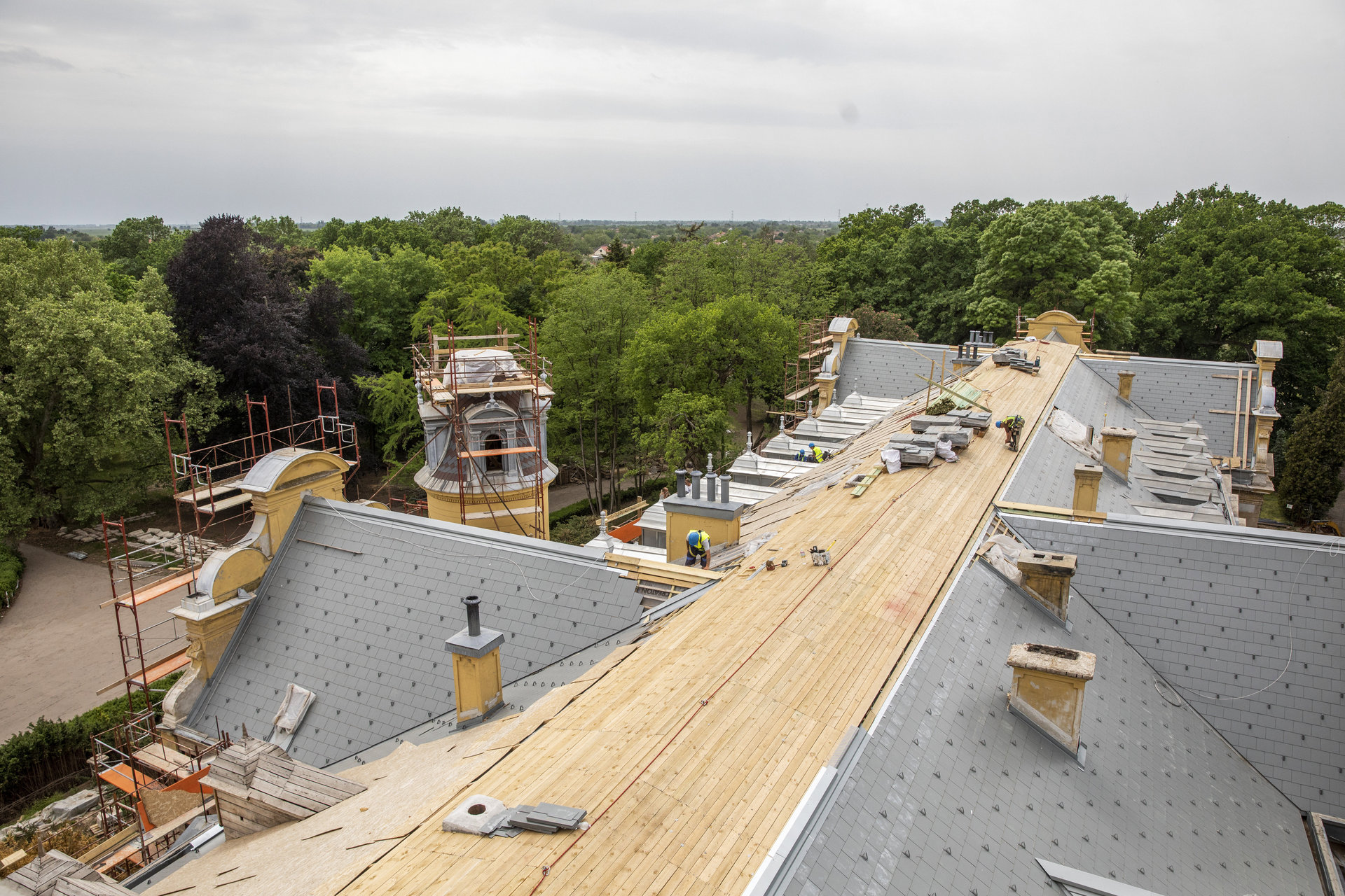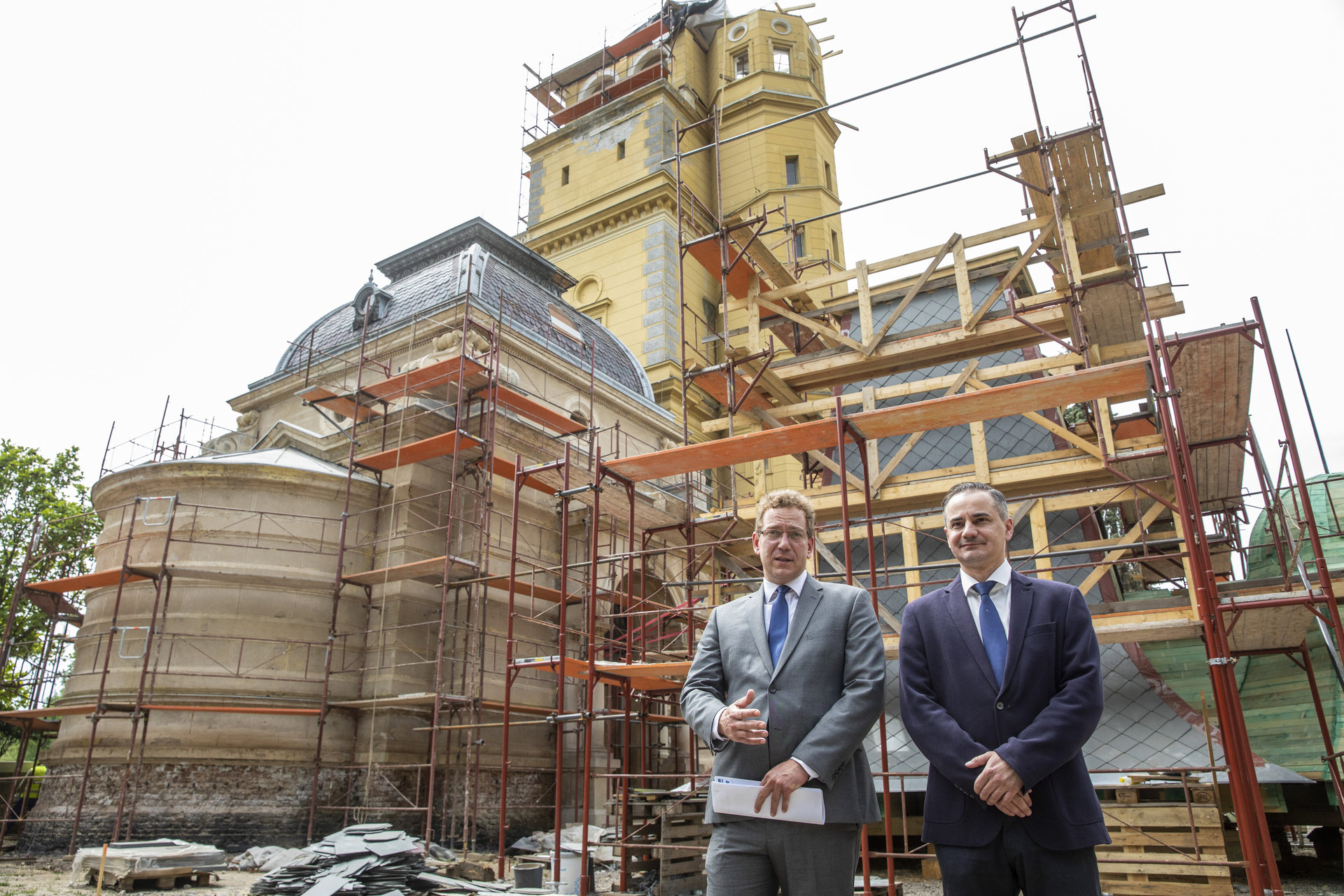 Glázer Tamás elmondta, hogy a járványhelyzet nem befolyásolta a munkálatokat, azok folyamatosan és zökkenőmentesen zajlanak 2019 tavasza óta. Megújul az 1875-1879 között épült a kastély főépületének földszintje, a pince egy része, a főlépcsőház és a kilátótorony, valamint a főépület közvetlen környezete. Restaurálják a falfestéseket, a padló- és falburkolatokat, teljes tető- és homlokzat felújítás, utólagos szigetelés és gépészeti munkák valósulnak meg, valamint közműfejlesztést is végeznek – sorolta.