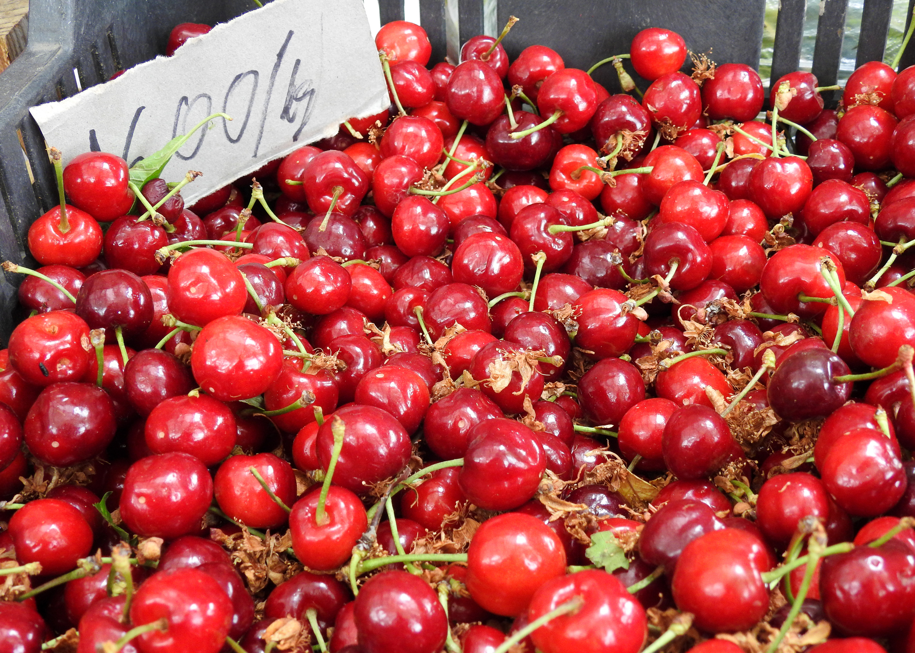 A korai cseresznye idén a héten volt először kapható a piacon, ottjártunkkor mindössze egy standnál. A termelő 1600 forintért árulta a gyümölcs kilóját.