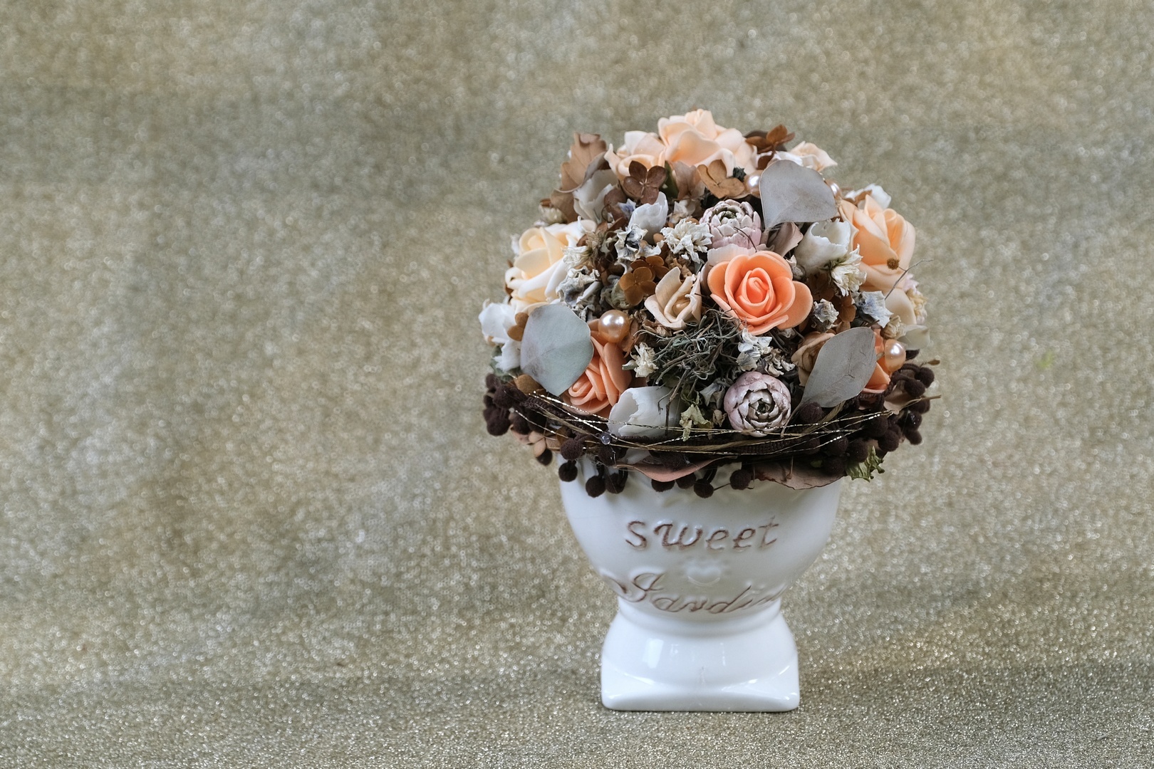 Mint megtudtuk, a kicsit tömött virágkötészeti készítmények jellemző színei a barack, a rózsaszín, az ekrü, a halványzöld és a babakék.