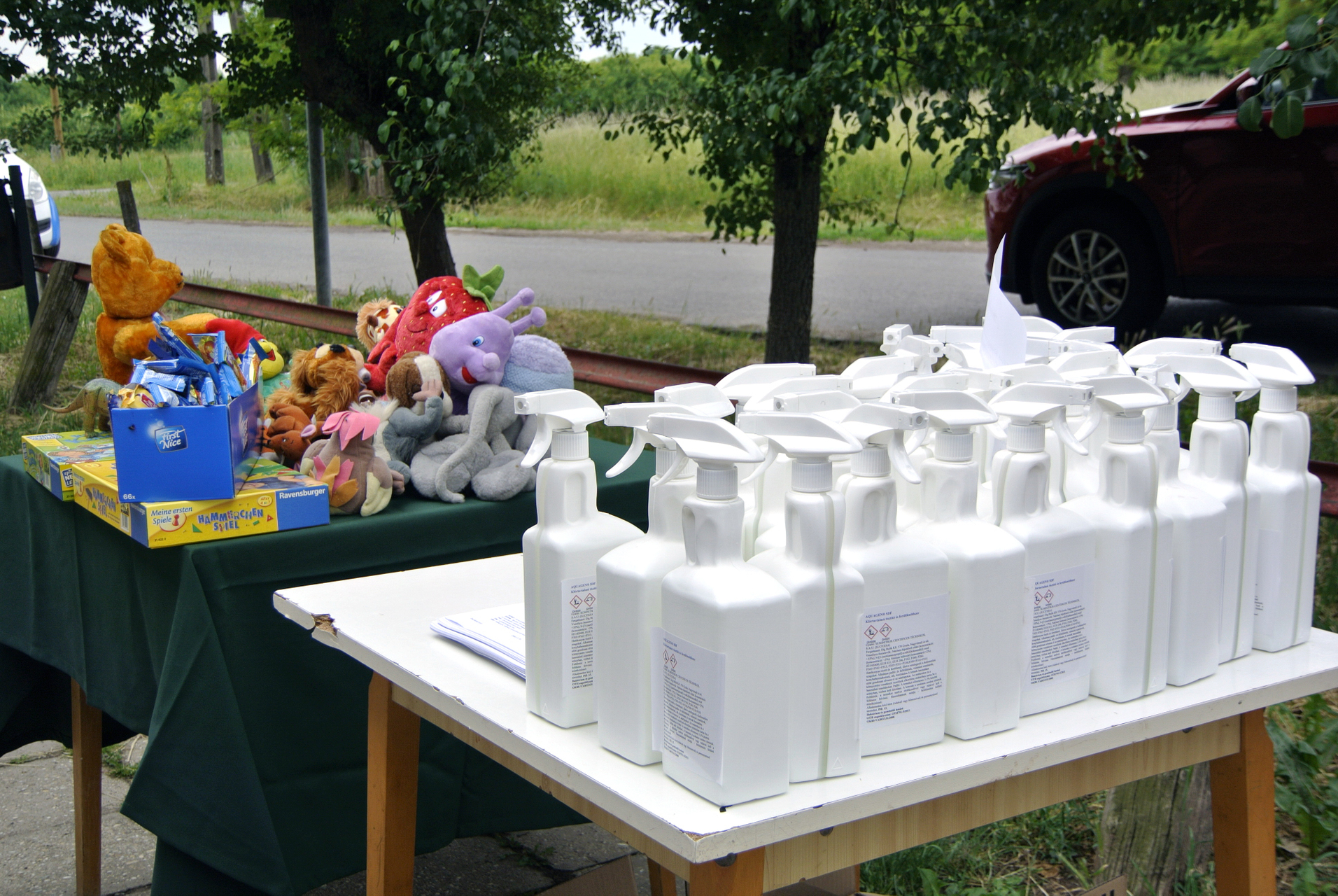 Mikus Éva és Mészáros Ilona játékokat, édességet vitt a lakosoknak, Bagosi Sándor pedig kétdoboznyi fertőtlenítőszerrel csatlakozott a kezdeményezéshez.