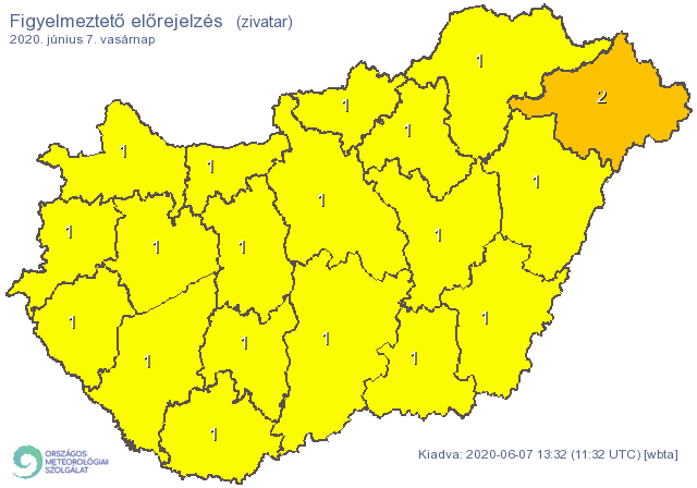 A késő délelőtti, déli óráktól többfelé kell zivatarok kialakulására számítani, legnagyobb számban és eséllyel az ország középső-keleti felén. Éjszaka továbbra is lehet számítani szórványosan zivatarokra (főleg az ország északi felén). A zivatarok fő veszélyforrása ma és holnap is a felhőszakadás lesz (helyenként akár 50 mm feletti csapadék is hullhat rövid idő alatt), de 2 cm körüli jég és viharos széllökés (jellemzően 60-80 km/h, de egy-egy helyen akár >80 km/h is lehet) is társulhat hozzájuk.