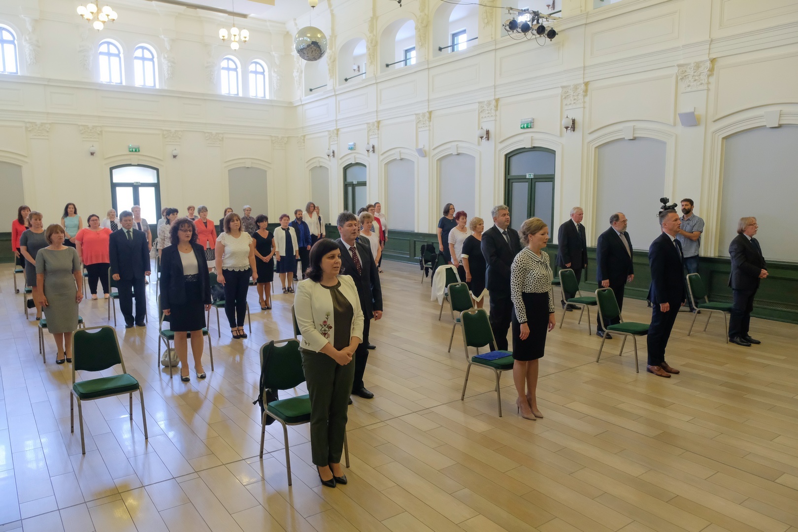 A koronavírus-járvány miatt a megszokottól eltérően, szűk körben ünnepelték a pedagógusnapot június 8-án Gyulán, a Vigadóban. A Gyulai Tankerületi Központ által szervezett eseményre idén kizárólag a díjazottakat hívták meg.