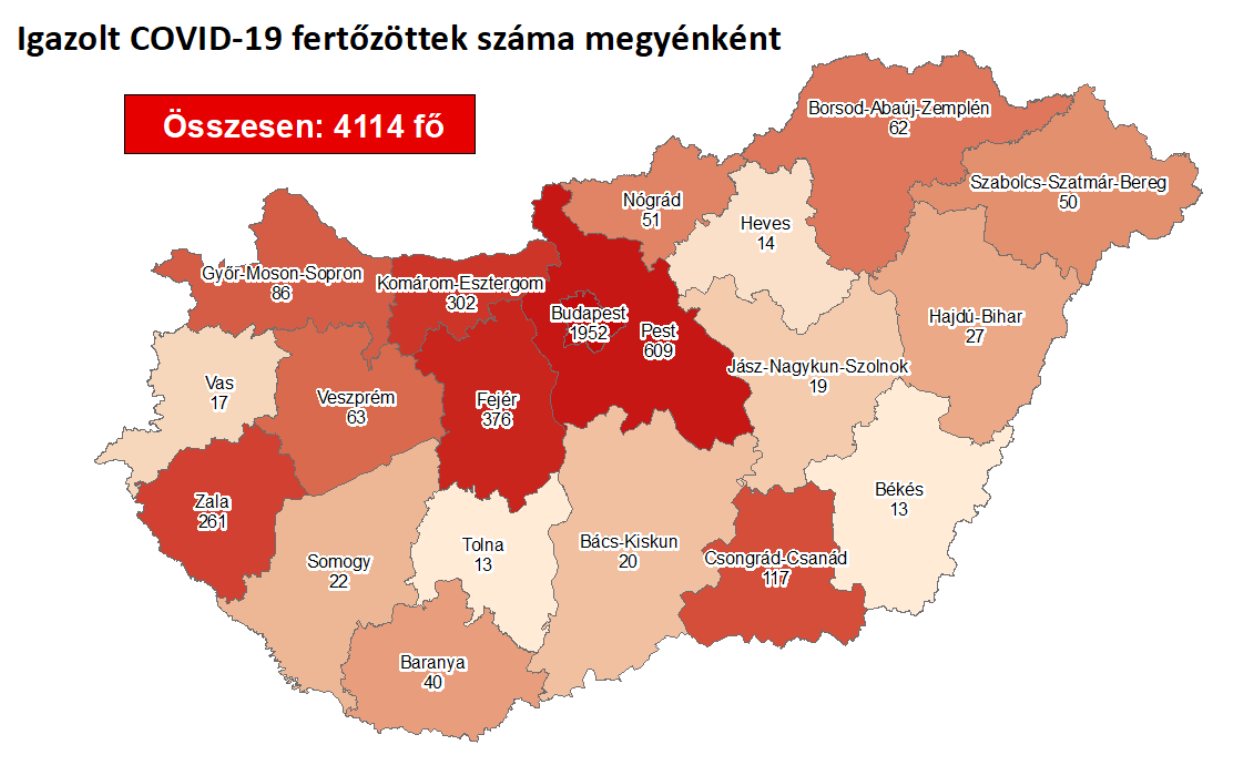 Az aktív fertőzöttek száma 920. Az aktív fertőzöttek 39 százaléka, az elhunytak 60 százaléka, a gyógyultak 48 százaléka budapesti. 183 koronavírusos beteget ápolnak kórházban, közülük 13-an vannak lélegeztetőgépen.