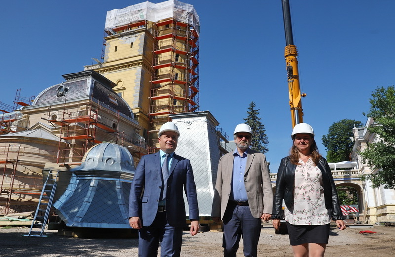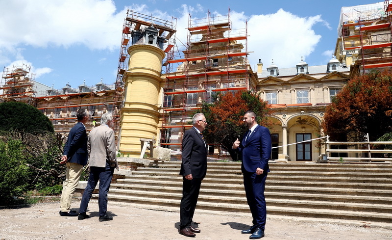 Balogh Csaba vezető tervező elmondta: a beruházás keretében megvalósul a kastély teljes külső rekonstrukciója, a tető, a külső nyílászárók cseréje, a teraszok újraszigetelése és a földszinti részt pedig történelmi pompájában állítják helyre. Ifj. Németh Miklós a generálkivitelező Modinvest Kft. ügyvezető igazgatója az aktuális munkálatokról tájékoztatta a résztvevőket.