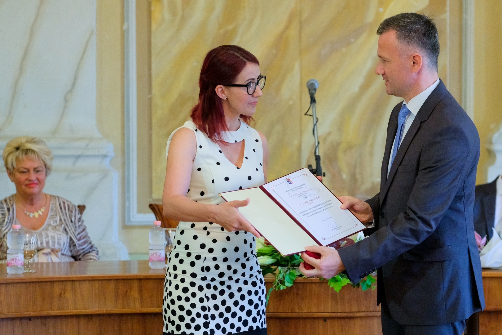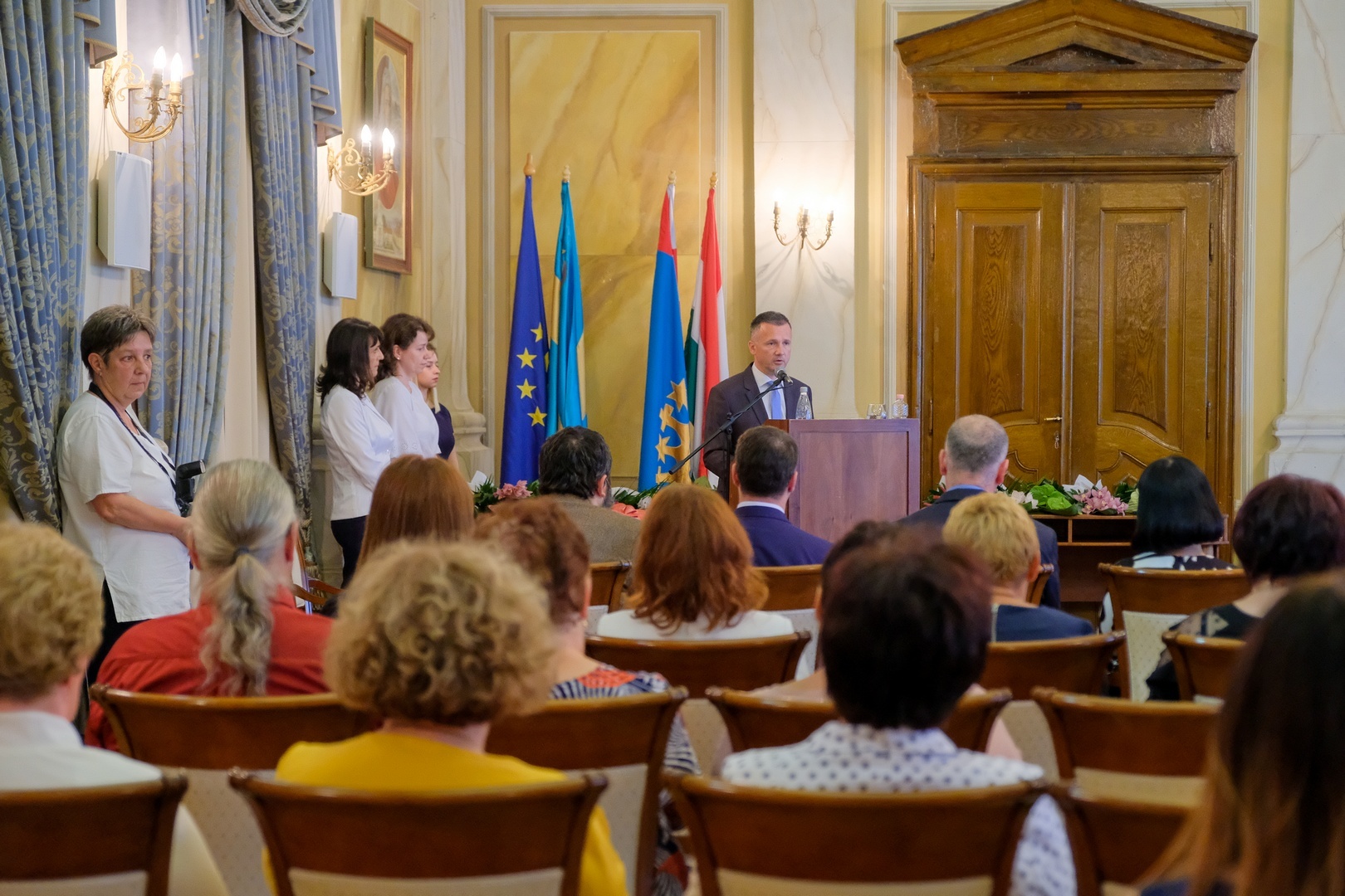 Végezetük főorvosi és adjunktusi kinevezéseket vehetett át Wolf Ildikó, Kiss Barna, Seres Ábel és Marik László.