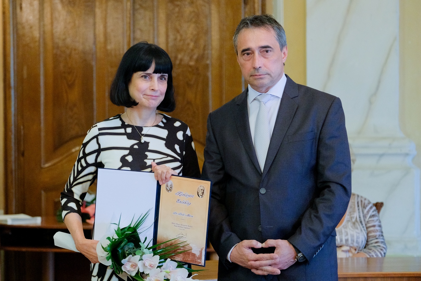 Kórházért elismerésben részesült Dobó Márta, a bőrgyógyászati osztály vezető főorvosa. A kitüntetett 1986 óta dolgozik a bőrgyógyászati osztályon. Szakorvosi képzése során több hónapot töltött a Szegedi Tudományegyetemen, ahol a dermatochirurrgiai ellátás ismereteit is elsajátította. Irányítása alatt fegyelmezetten, nagy precizitással, a betegek iránti empátiával, családias hangulatban folyik a munkavégzés az osztályán. Kollégái szívesen dolgoznak mellette, személyiségét kiegyensúlyozottság, határozottság, lelkiismeretesség, segítőkészség jellemzi – hangzott el.