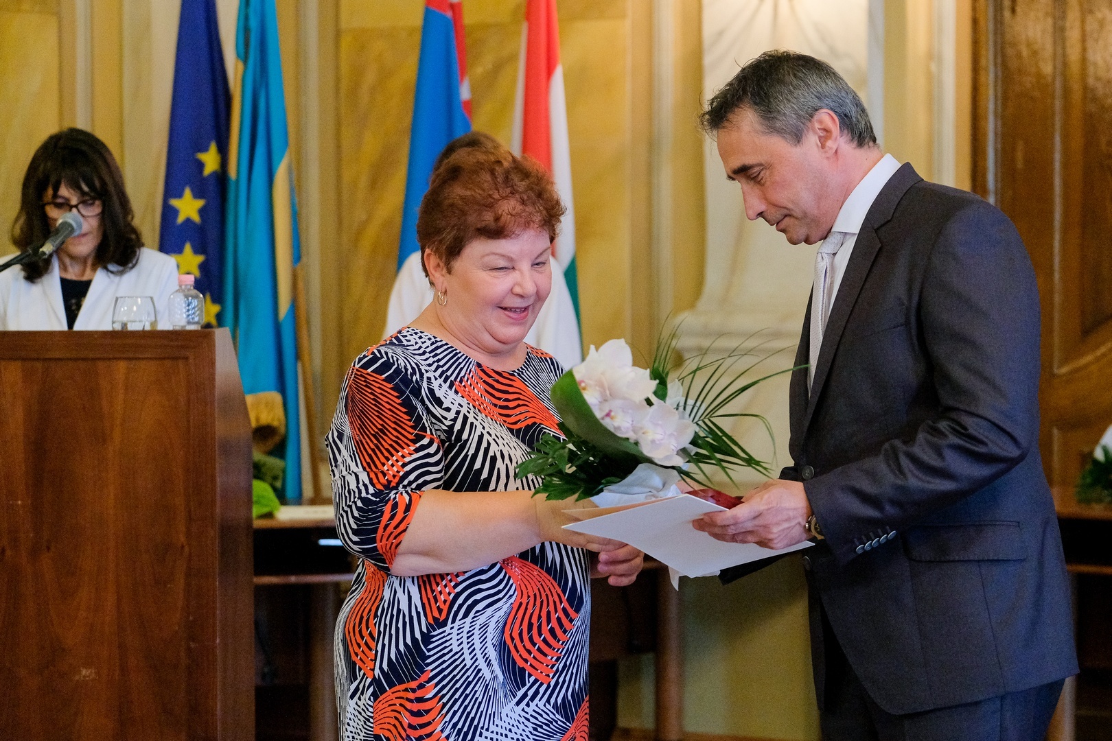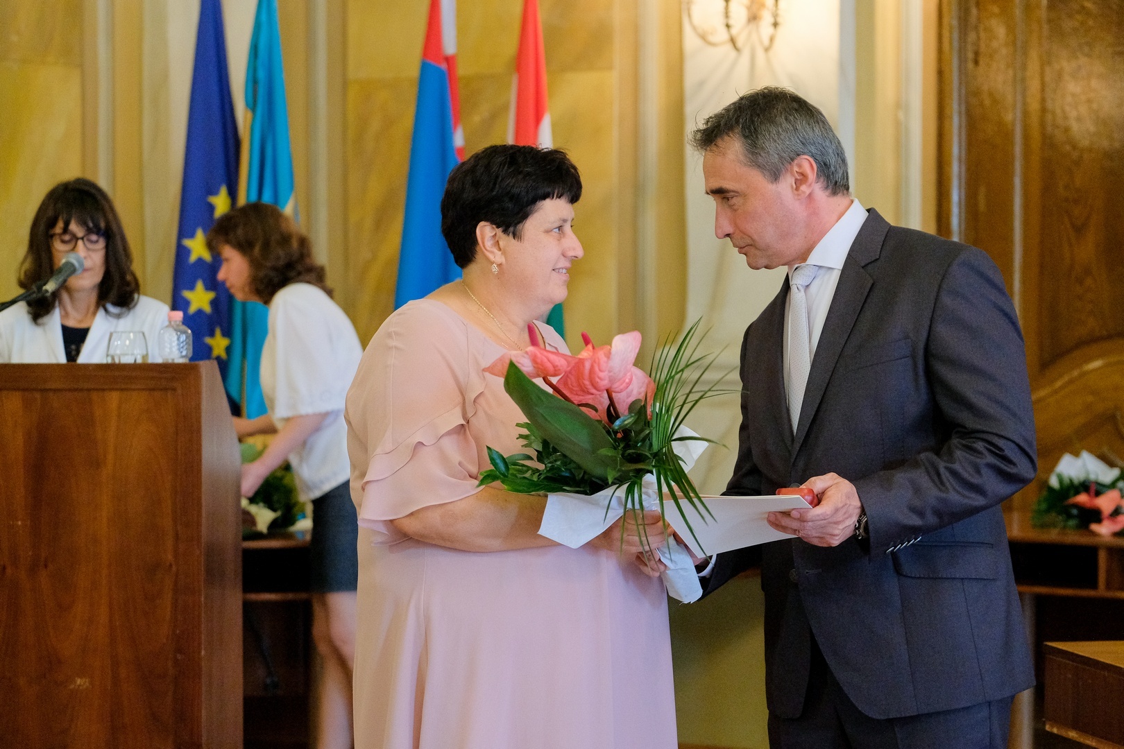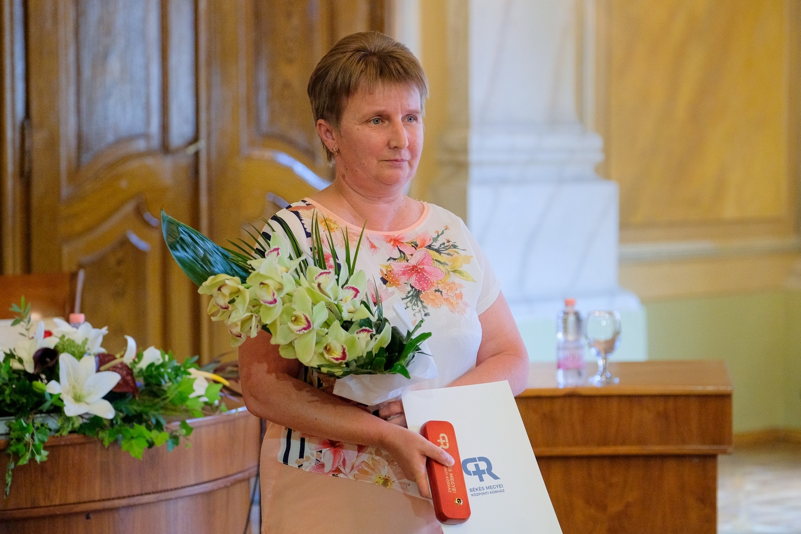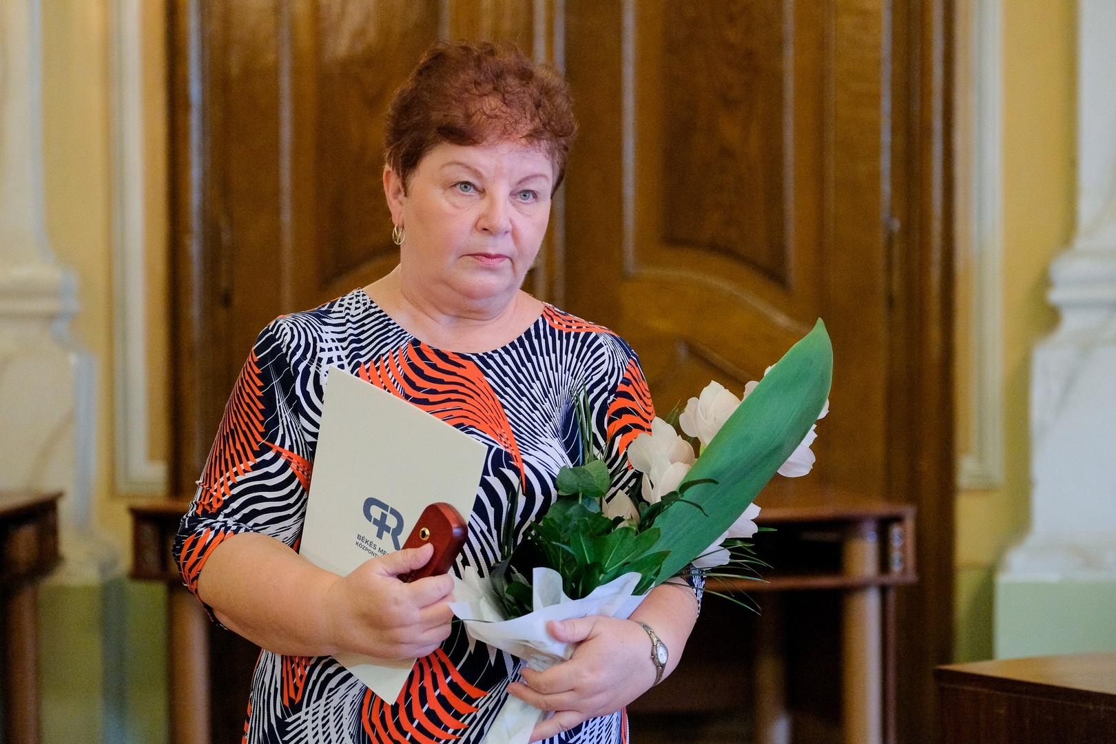 A kitüntetések átadását követően felkérték Koszta Juliannát, a Magyar Egészségügyi Szakdolgozói Kamara gyulai szervezetének elnökét, hogy adja át a kamara Semmelweis-napi elismerő oklevelét Tóth Sándornénak, a reumatológiai szakrendelő szakasszisztensének.