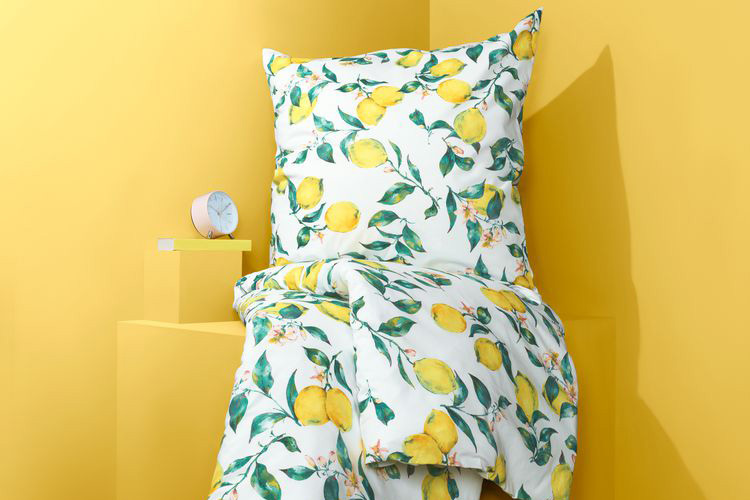 A pihentető éjszakához a kellemes viseletet biztosító hálóruhák mellett a renforcé ágyneművel is hozzájárulhatunk, amely a hálóinghez hasonlóan fehér alapra nyomva hozza az akvarell jellegű citromos mintát, zöldes és sárgás színekben. A tiszta biopamutból készült finom, sűrű szövésű anyag különösen könnyű és sima, ráadásul hőmérsékletkiegyenlítő és nedvszívó is, ráadásul egy- és kétszemélyes verzióban is elérhető a webáruházban – mindkét esetben cipzáras kialakítással a lehető legpraktikusabb felhasználás érdekében!