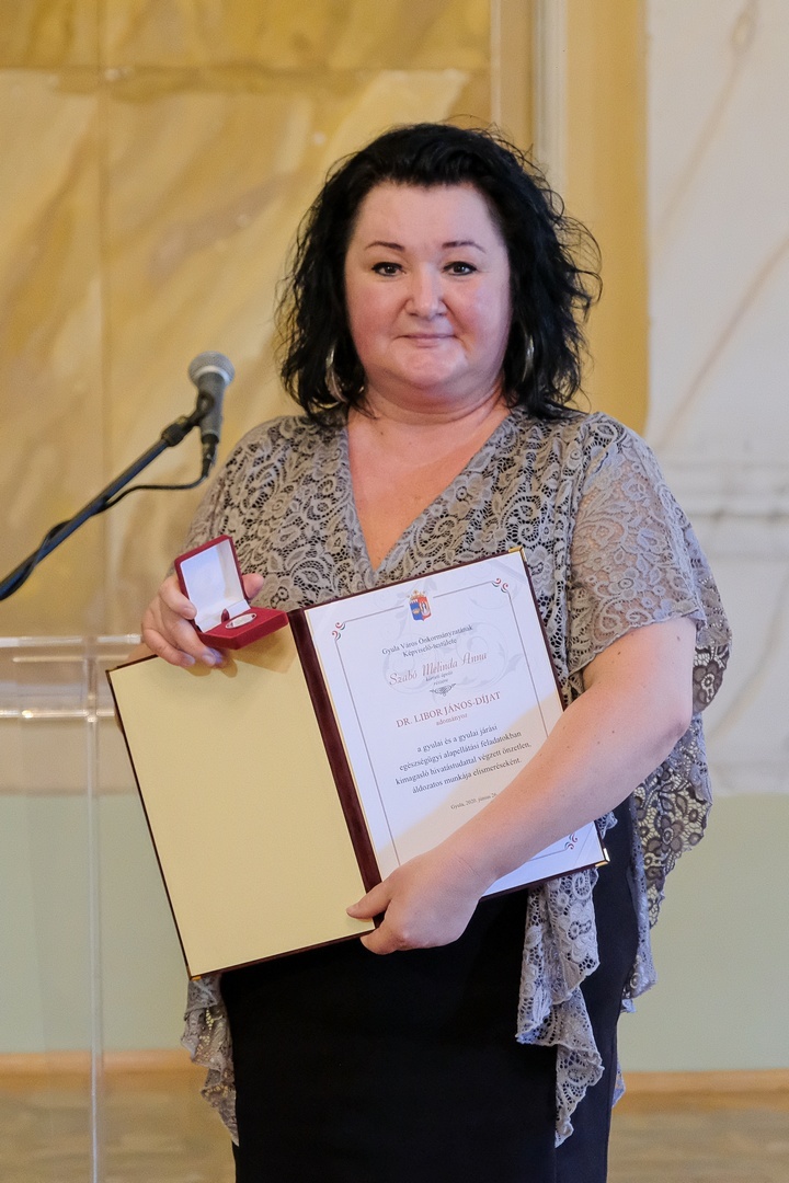 Libor János-díjat kapott Szabó Melinda, aki a Bay Zoltán gimnáziumban szerzett érettségit, valamint általános ápoló és általános asszisztens képesítést, majd a Semmelweis Egészségügyi Szakképző Iskolában folytatta tanulmányait és szakképesített ápoló lett. 1999-től a megyei kórház pszichiátriai osztályának női részlegén dolgozott tíz éven keresztül, 2009-ben pedig a 8. számú körzet házi gyermekorvosi praxisának ápolója lett. Besegít továbbá az eleki háziorvosi ügyeletnél is, így nem csupán a város, de a gyulai járás alapellátásnak is tevékeny résztvevője. A város összes praxisának ápolói közül egyedüliként vesz részt Központi Orvosi Ügyelet munkájában.