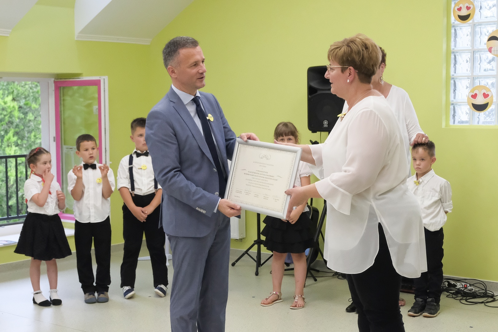 Görgényi Ernő beszéde után az intézmény jelenlegi és korábbi óvodásai adtak műsort a vendégeknek.