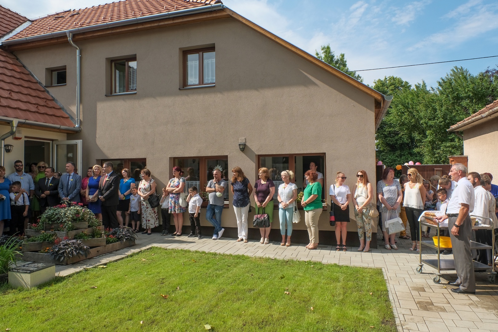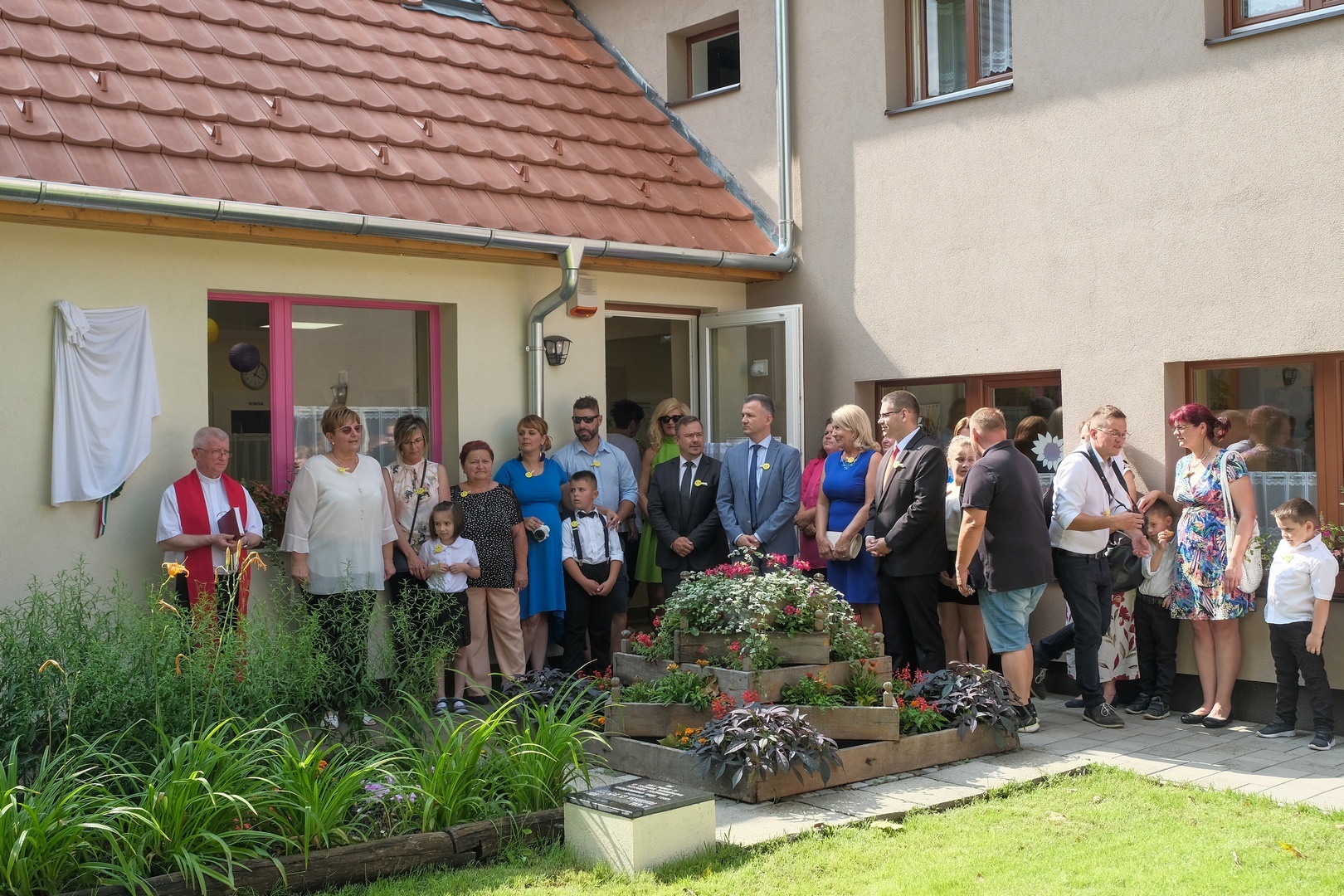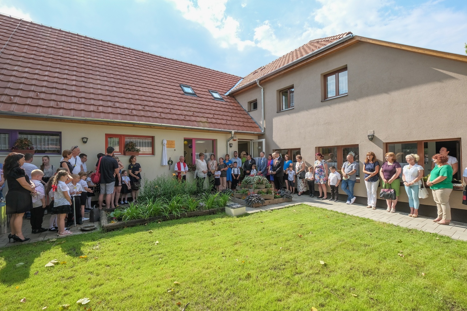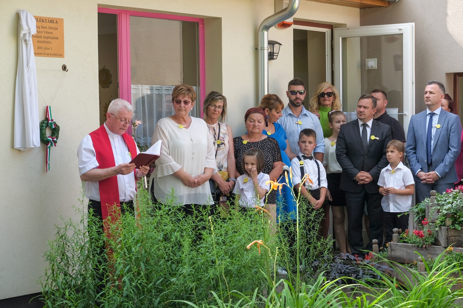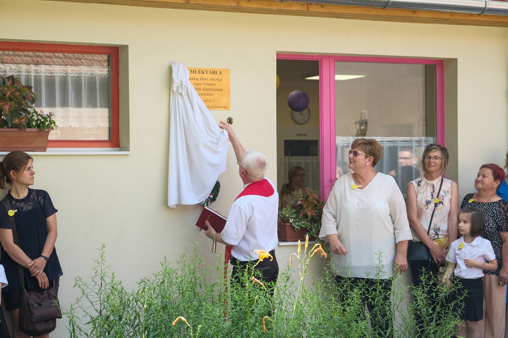 Az ünnepség egy emléktábla leleplezésével kezdődött, amely Apor Vilmosnak, a galbácskerti óvoda megalapítójának állít emléket. A táblát Kovács Péter esperesplébános leplezte le és áldotta meg, majd az átadó az új épületrész tetőterében kialakított tornaszobában folytatódott.