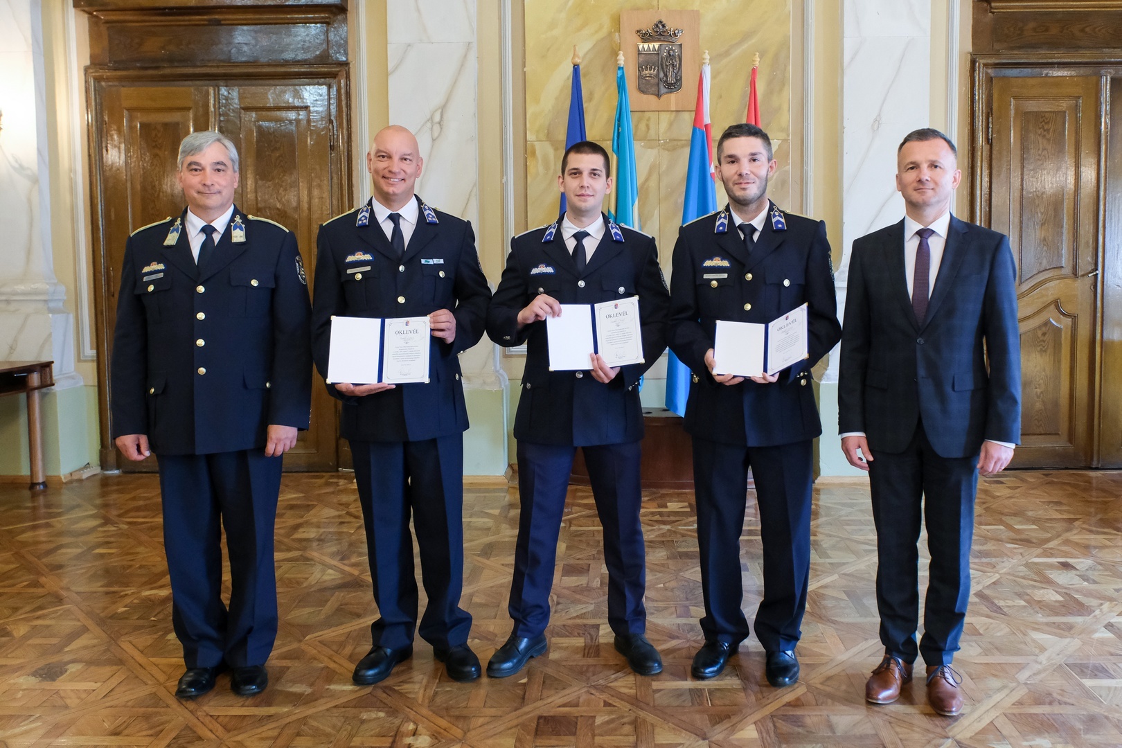 A városvezető elmondta, hogy a rendőröket pénzjutalomban részesítették, emellett egy oklevelet is átvehettek a díszteremben.