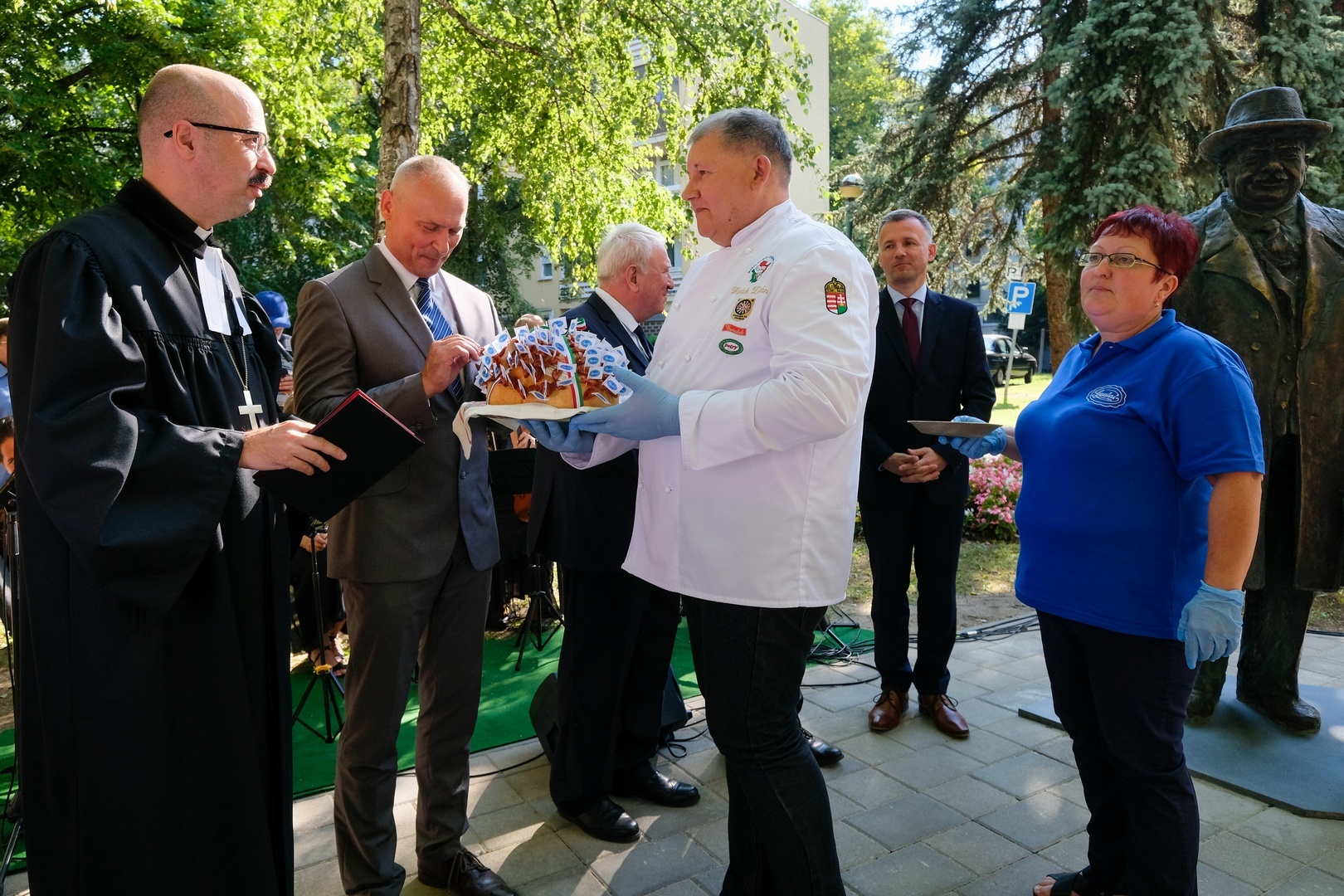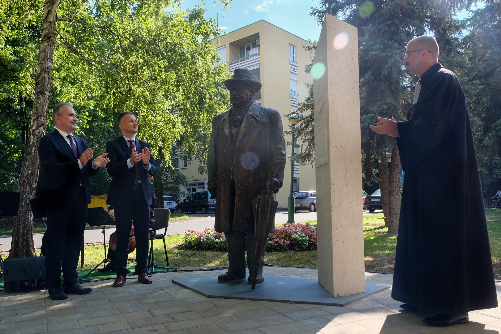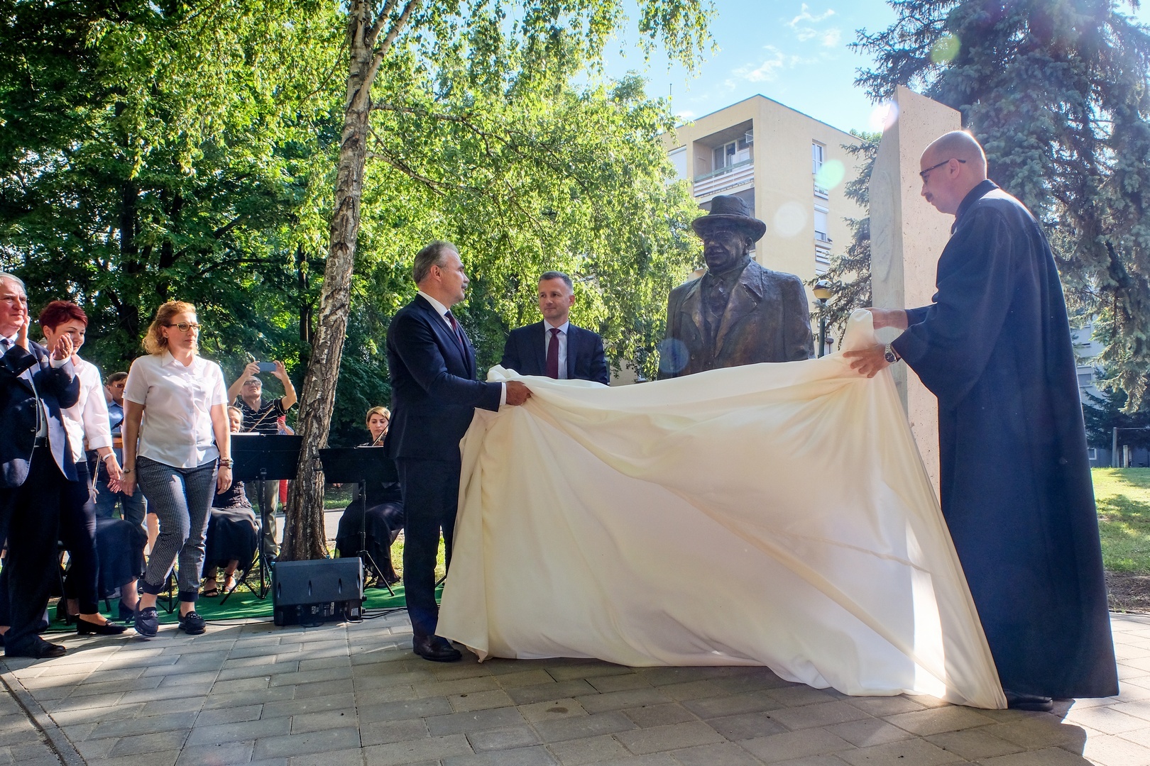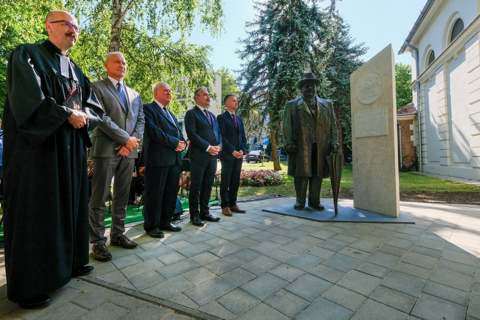 A köszöntők után leplezték le a szobrot, majd az ünnepség Kondor Péter evangélikus püspök áldáskérésével zárult.