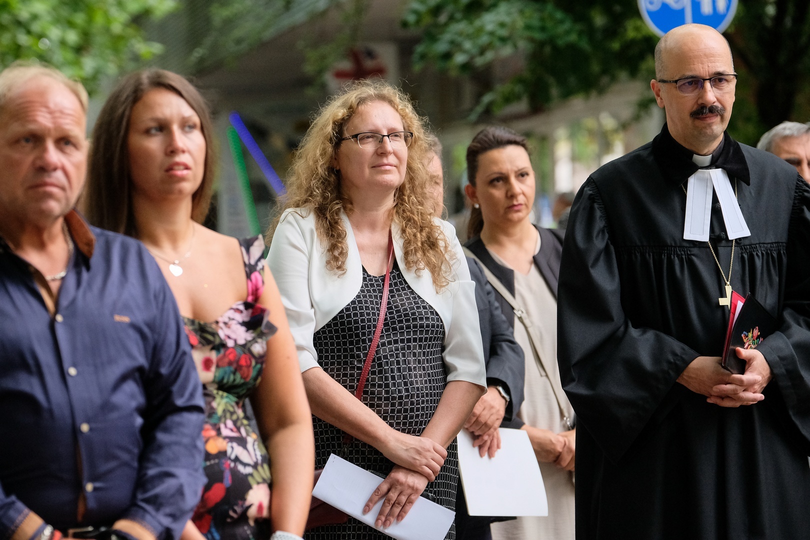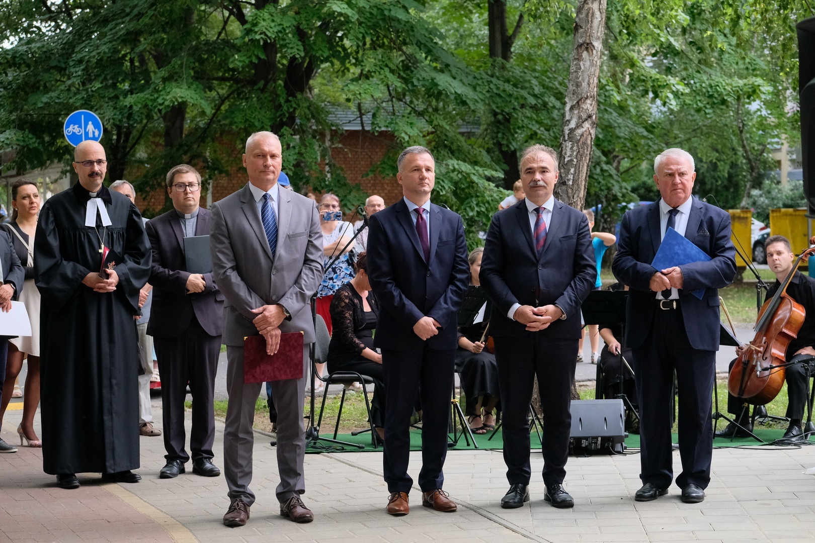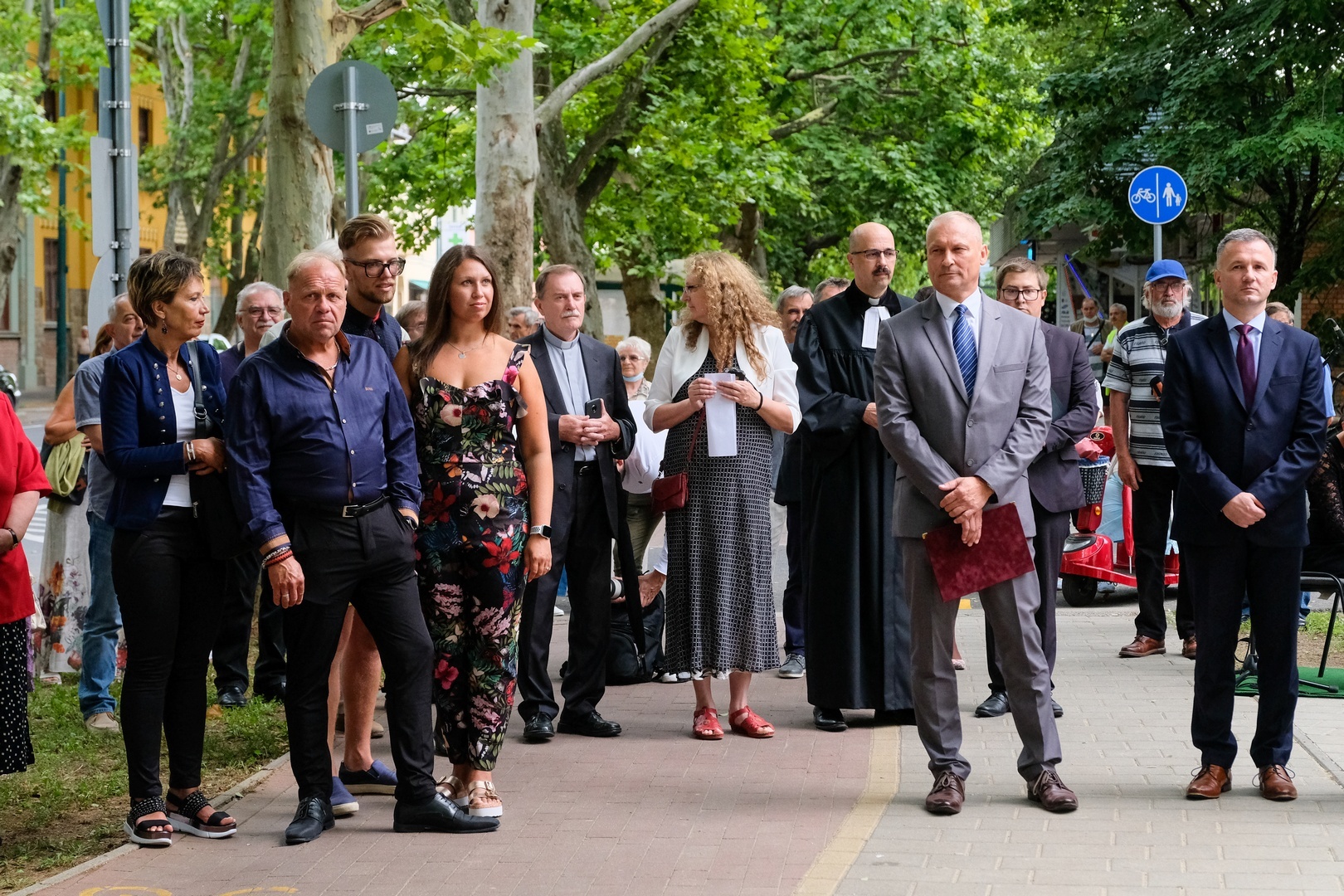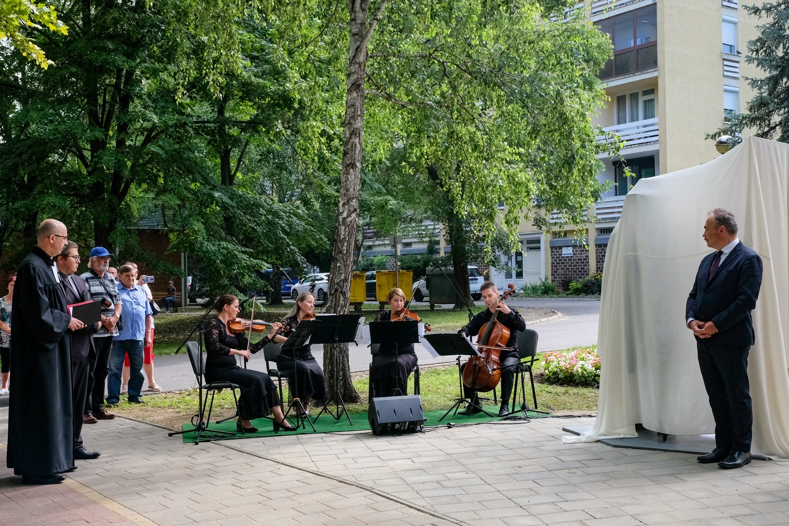 A köszöntők után leplezték le a szobrot, majd az ünnepség Kondor Péter evangélikus püspök áldáskérésével zárult.