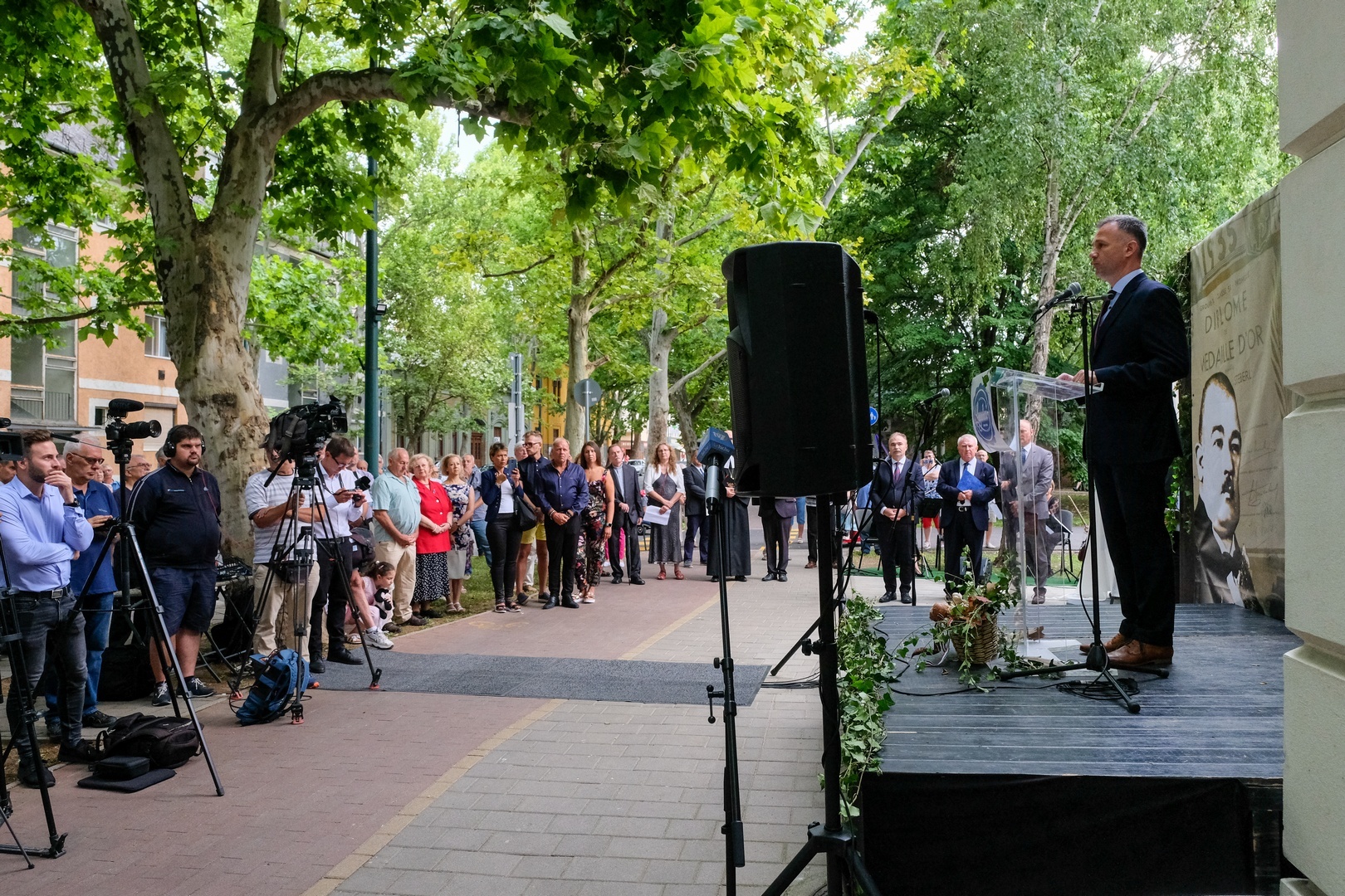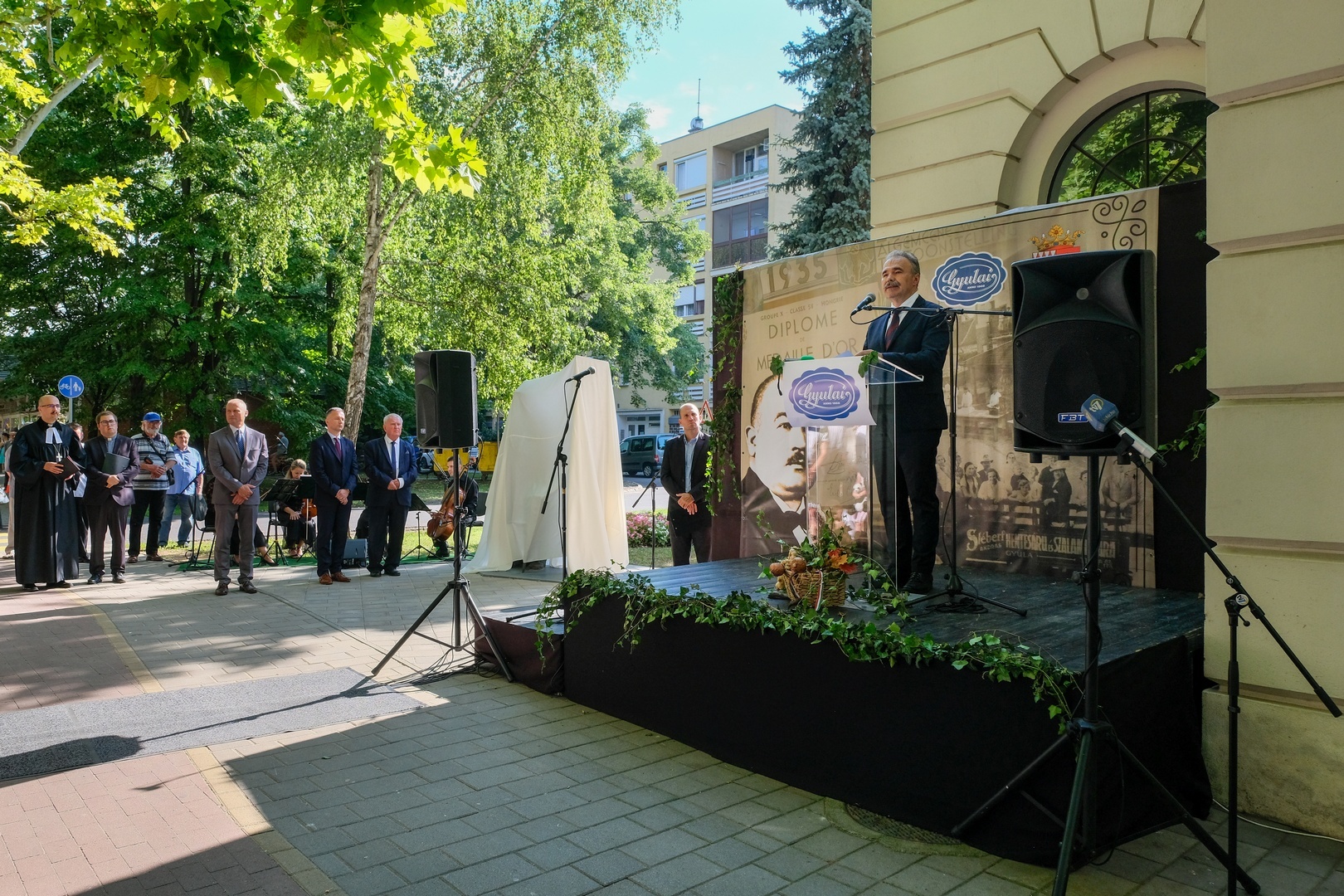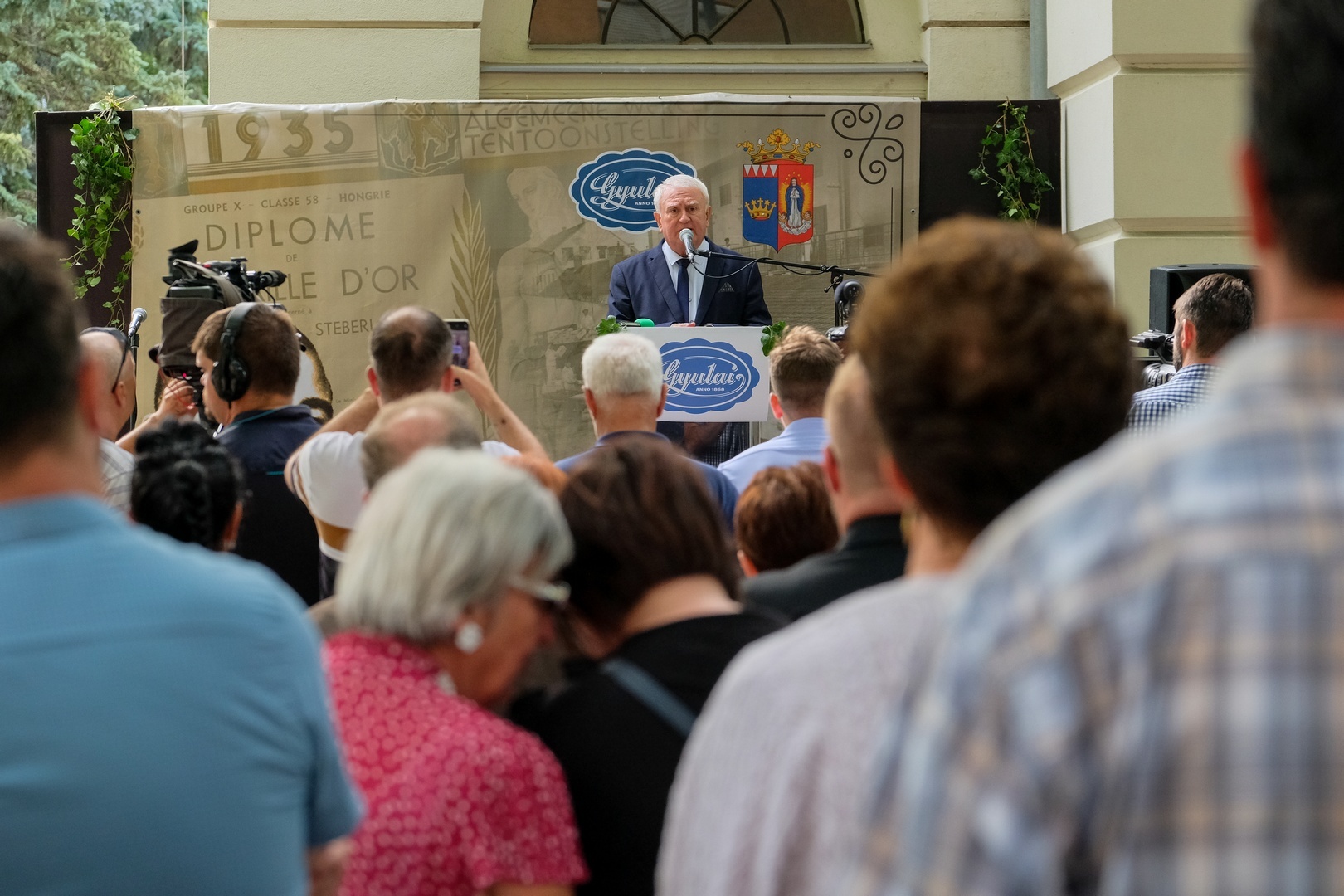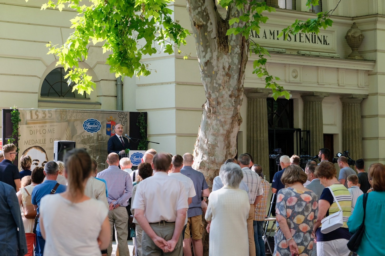 – „A jövőnek sok neve van: a gyenge úgy hívja, elérhetetlen, a gyáva úgy, ismeretlen, a bátor lehetőségnek nevezi.” – kezdte beszédét egy Victor Hugo idézettel Görgényi Ernő polgármester. – A fiatal, mindössze huszonnégy esztendős hentessegéd, aki 1912 őszén a Felvidékről jött Gyulára, az utóbbiak közé tartozott, a jövőt bátor lehetőségnek tekintette.