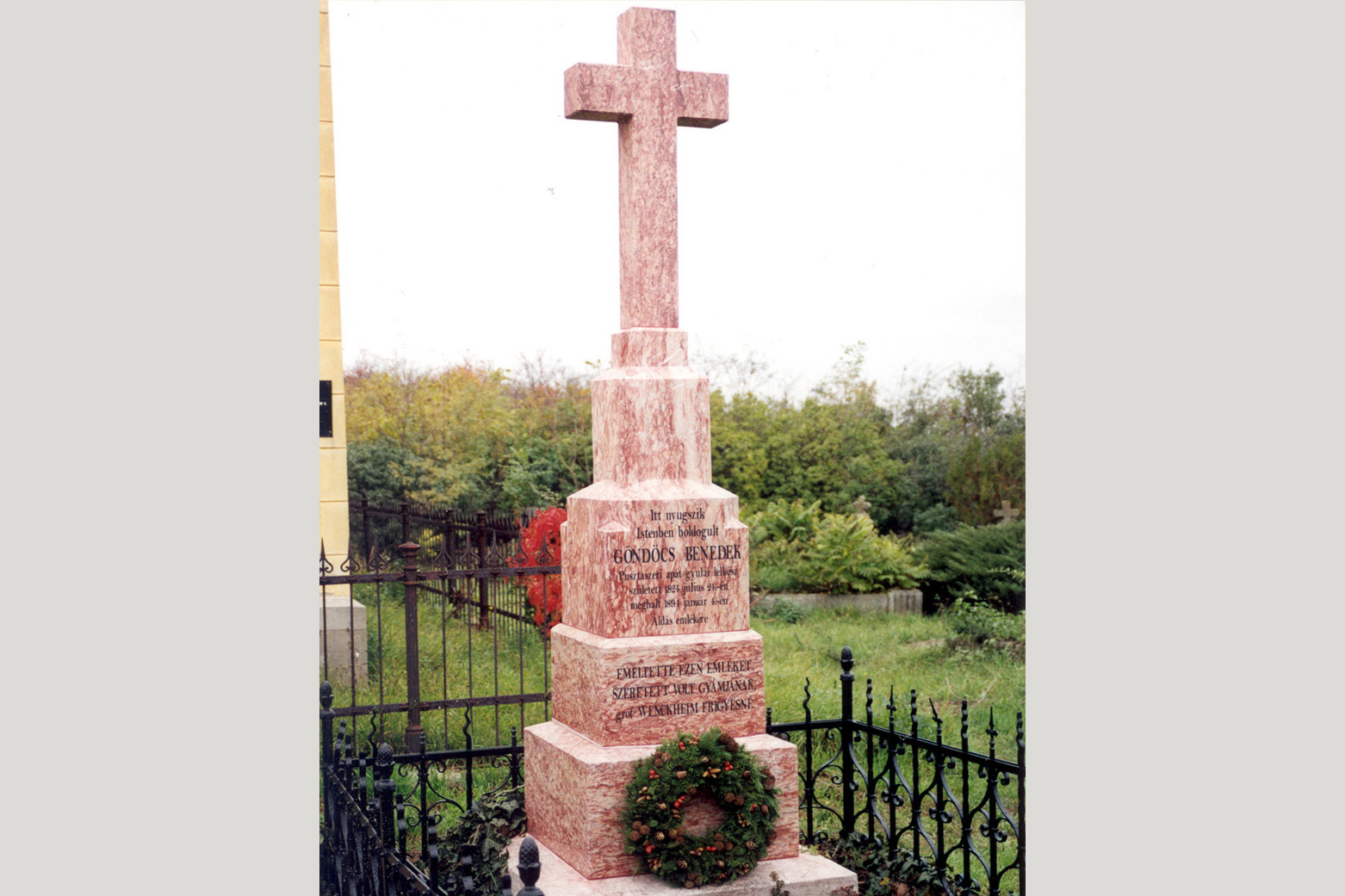 125 évvel ezelőtt, 1895. augusztus 19-én állították fel Göndöcs Benedek síremlékét a Szent Kereszt (kolera) temetőben. A 3 méter magas boros-sebesi vörös márványból készült díszes síremlék piramis alakú és keresztben végződik. A következő feliratot vésték rá: „Itt nyugszik Istenben boldogult Göndöcs Benedek, pusztaszeri apát, gyulai lelkész. Szül. 1824. január 24. Meghalt 1894. január 4. Áldás emlékére. Emeltette volt gyámjának Gróf Wenckheim Frigyesné.” A feledhetetlen apát és kiváló emberbarát sírját vörös márvány kőszegély és díszes vasrács szegélyezte és dísznövényekkel tervezték beültetni.