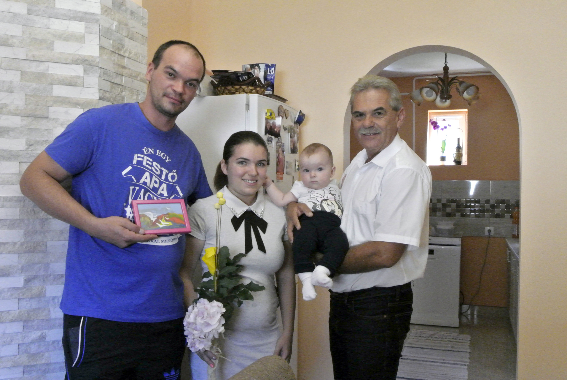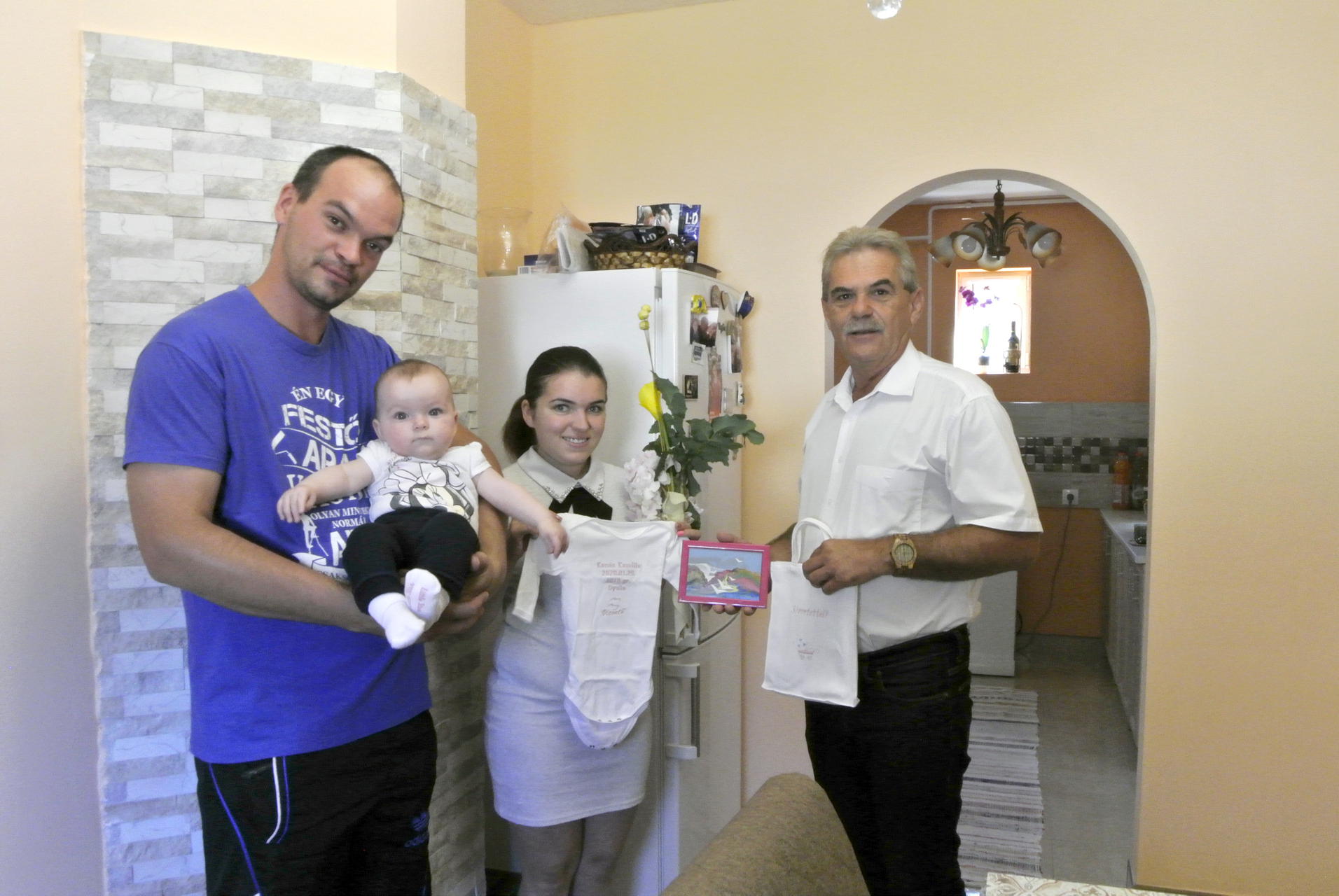 Kenéz Kamillát köszöntötte a gyulai Babaruha program keretében Szabó Károly július 28-án. Az önkormányzati képviselő egy Póka György-festménnyel, virággal és névre szóló babaruhával ajándékozta meg a családot.