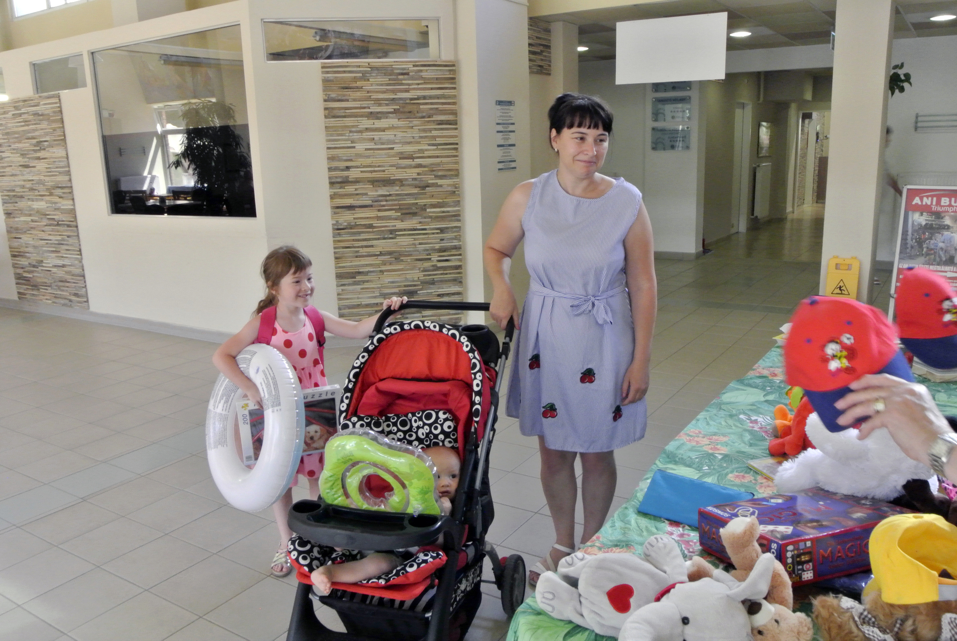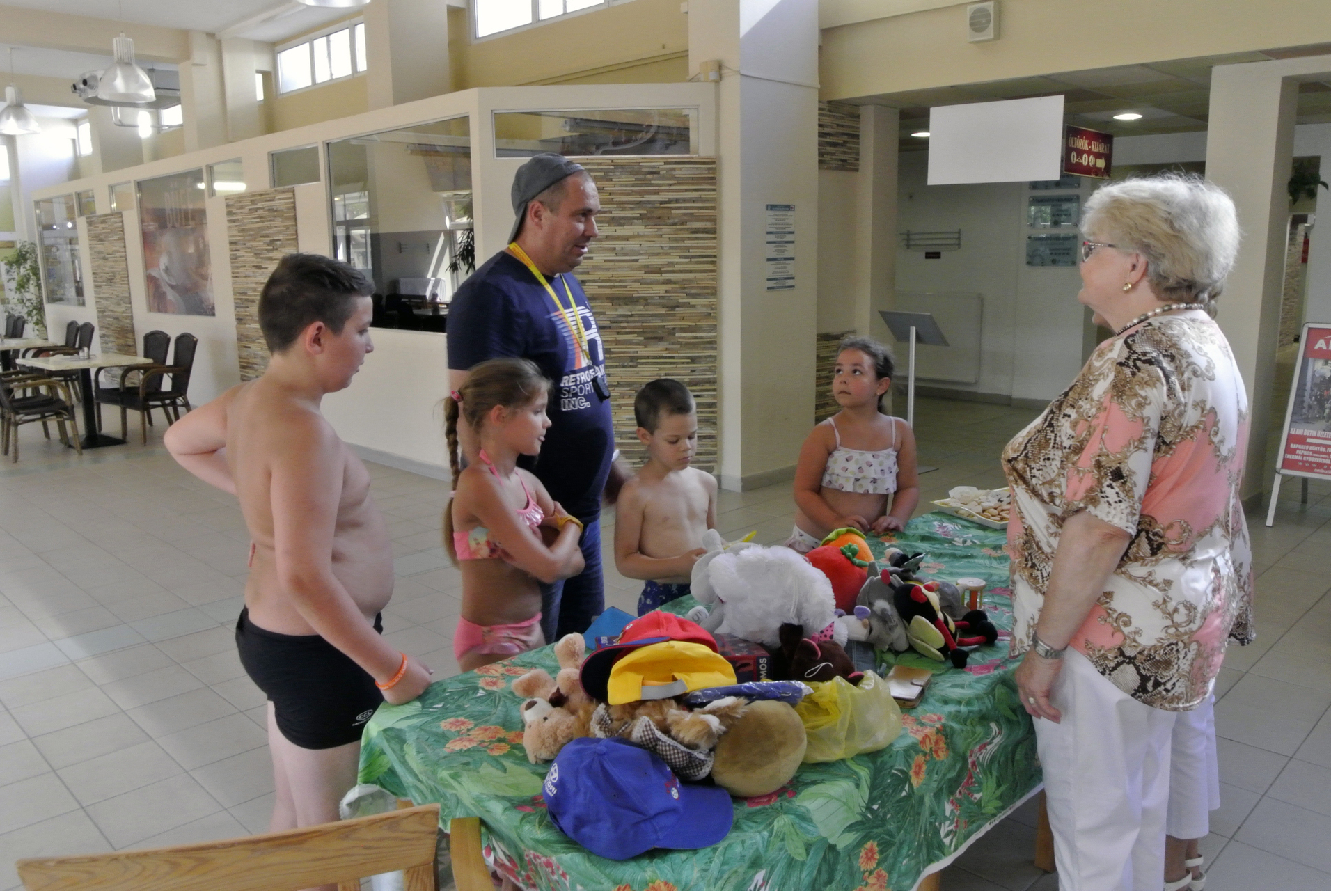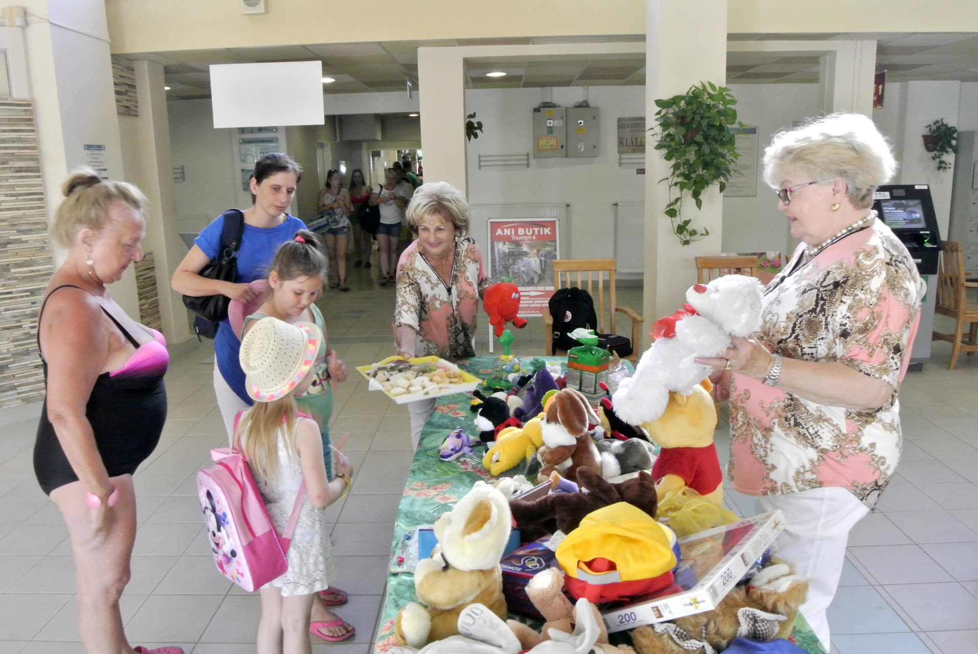 Mikus Éva elmondta, mindig szívesen érkezik a Gyulai Várfürdőbe, hogy egy kis örömöt szerezzen azoknak, akik a helyi strandra látogatnak. Segítőjével, Mészáros Ilonával ez alkalommal gyerekjátékokat, plüssfigurákat és édességet vitt a gyerekeknek, de akadt iskolaszer és fejlesztő játék is az ajándékok között.