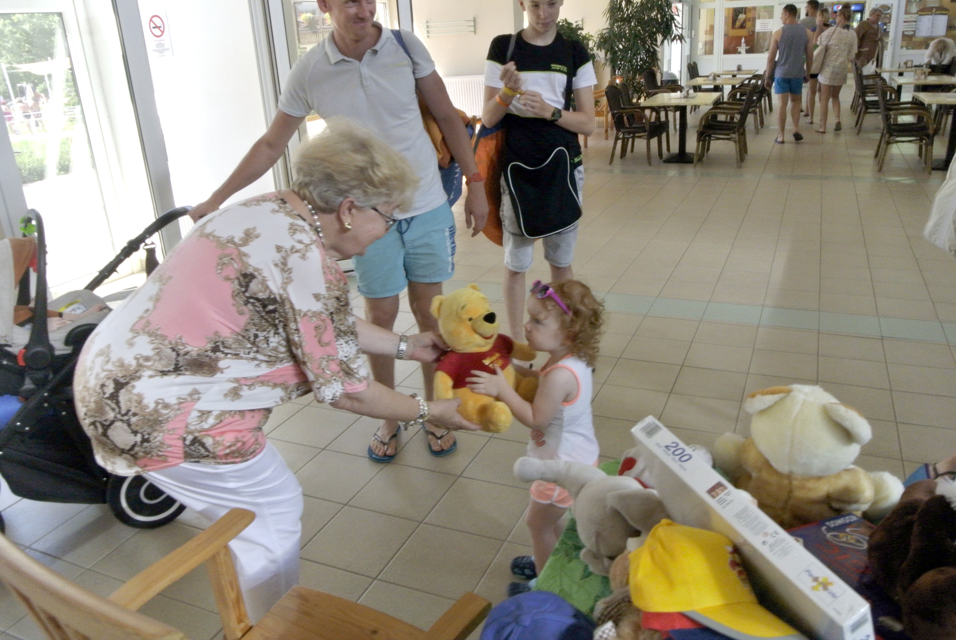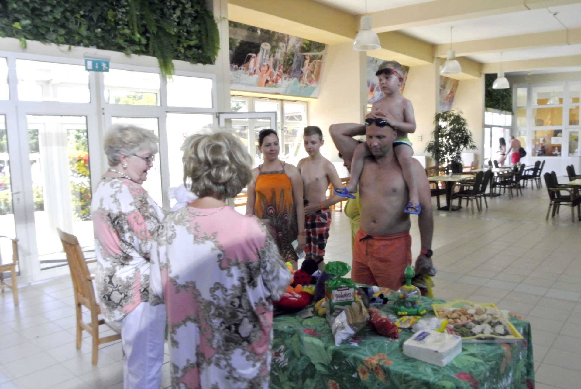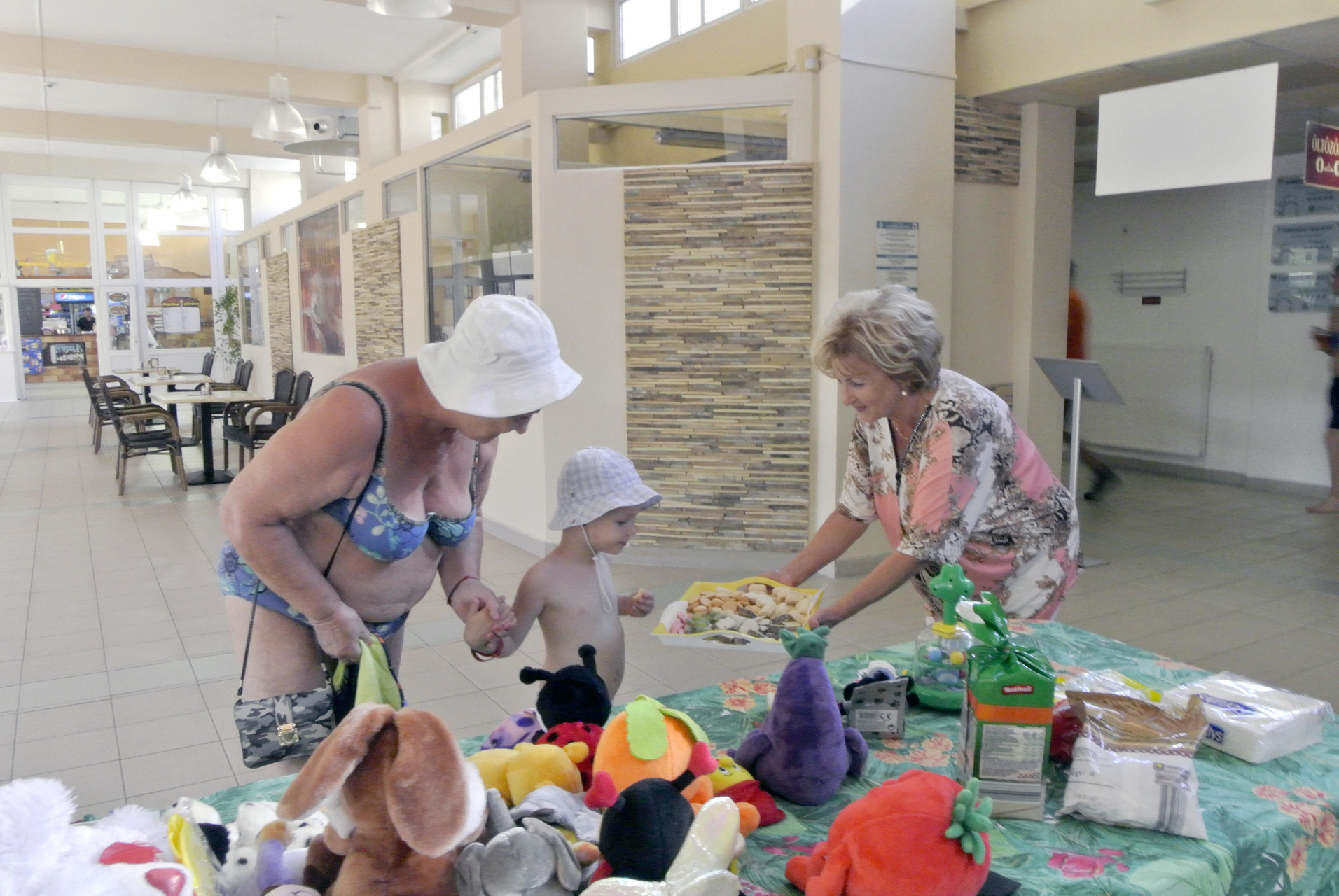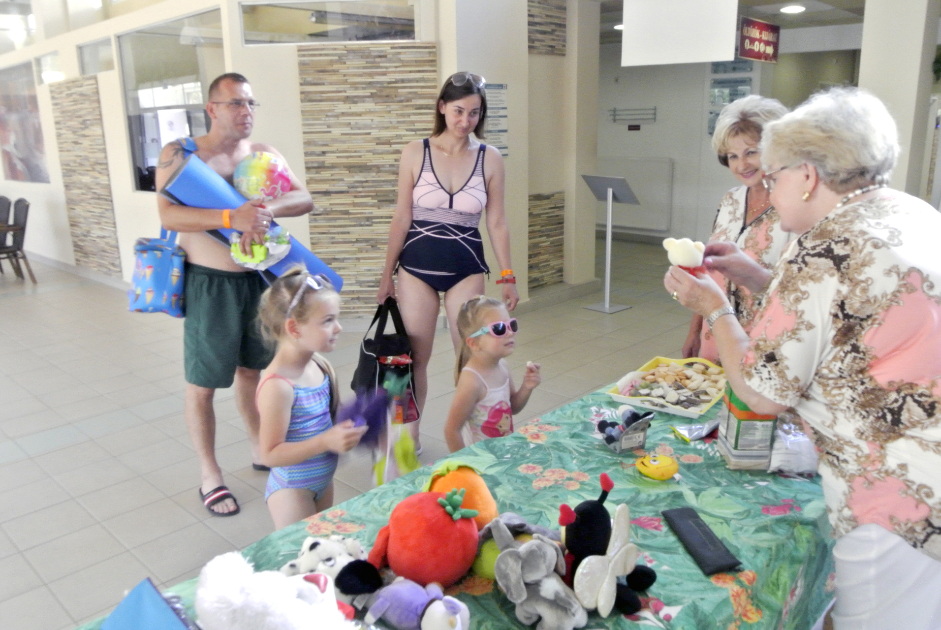 Mikus Éva elmondta, mindig szívesen érkezik a Gyulai Várfürdőbe, hogy egy kis örömöt szerezzen azoknak, akik a helyi strandra látogatnak. Segítőjével, Mészáros Ilonával ez alkalommal gyerekjátékokat, plüssfigurákat és édességet vitt a gyerekeknek, de akadt iskolaszer és fejlesztő játék is az ajándékok között.