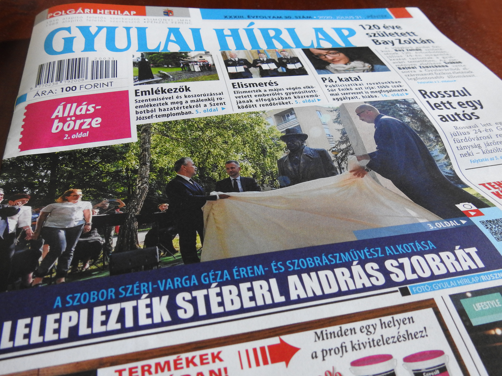 Itt a legfrissebb Gyulai Hírlap! Leleplezett szobor! Rendőri elismerés! Emlékezők!