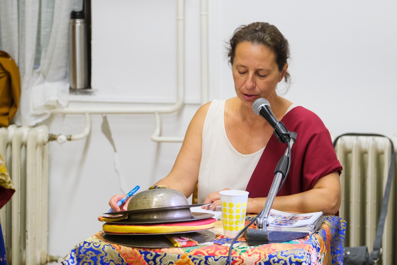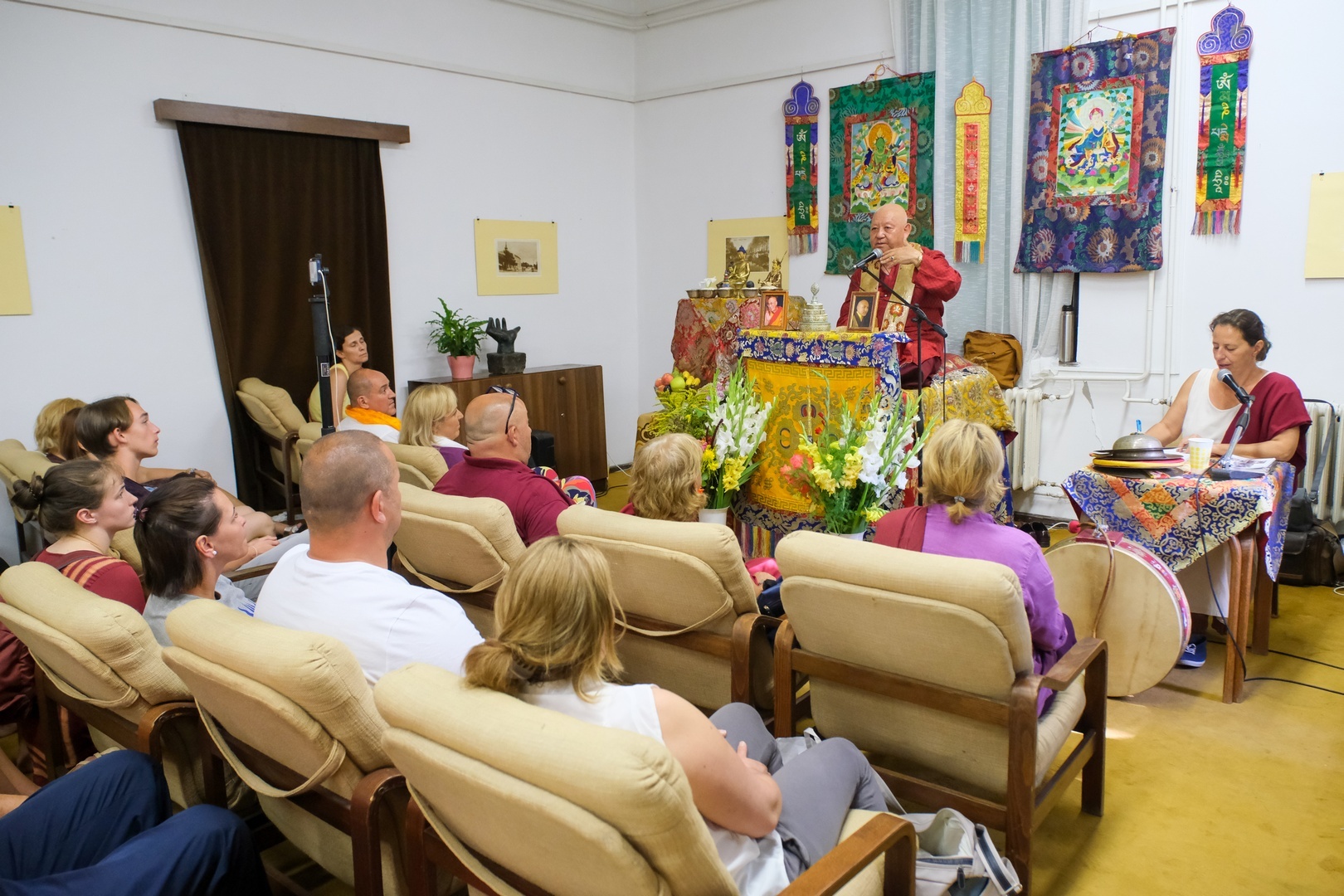 Az esemény hírére hamar megtelt a gyulai könyvtár előadóterme, ahol mintegy kétórás előadást tartott Karma Tanpai Gyalchen Rinpocse.