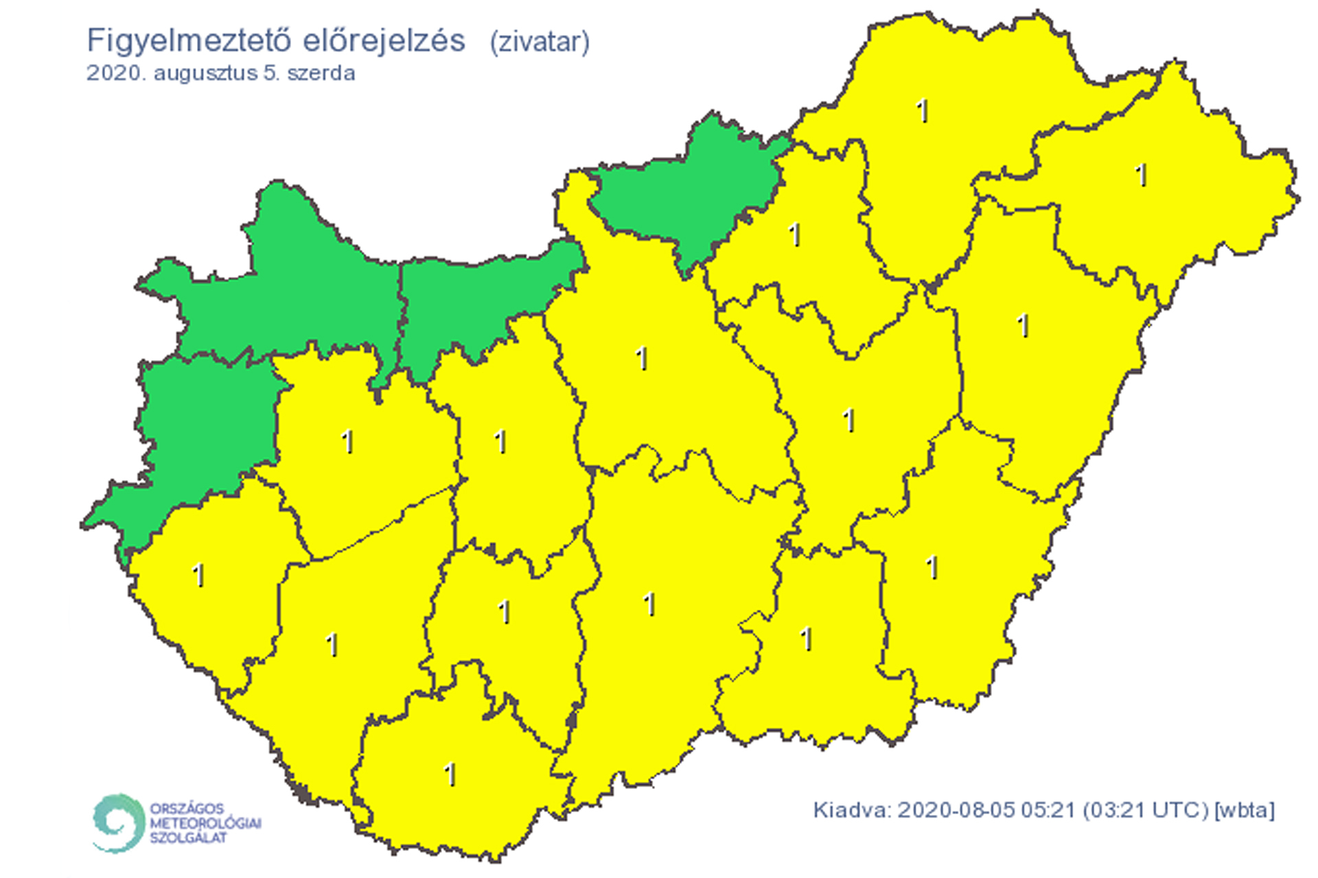 Veszélyjelzésükben azt írták: a reggeli órákban északkeleten és a Dél-Alföldön, napközben pedig inkább a délnyugati, déli tájainkon lehet zivatartevékenységre számítani, de heves zivataroknak már igen kicsi az esélye. A legjellemzőbb kísérőjelenség a felhőszakadás lehet, rövid idő alatt 20–40 milliméter csapadék hullhat, de átmeneti szélroham és jégeső is előfordulhat.