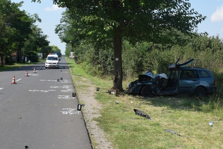 Egy személygépkocsi áttért a menetiránya szerinti bal oldali forgalmi sávba, majd lement az útról és fának ütközött augusztus 9-én Tótkomlóson. A járműben egy család ült, az apa, aki vezette a kocsit és a felesége súlyosan megsérült. Két gyermeküket könnyű sérüléssel vitték kórházba a mentők.