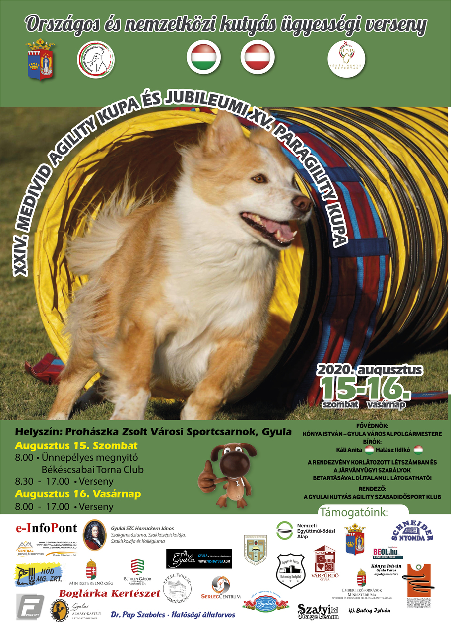 A XXIV. Medivid Agility Kupa és XV. Paragility Kupa futamait augusztus 15-16-án rendezik meg