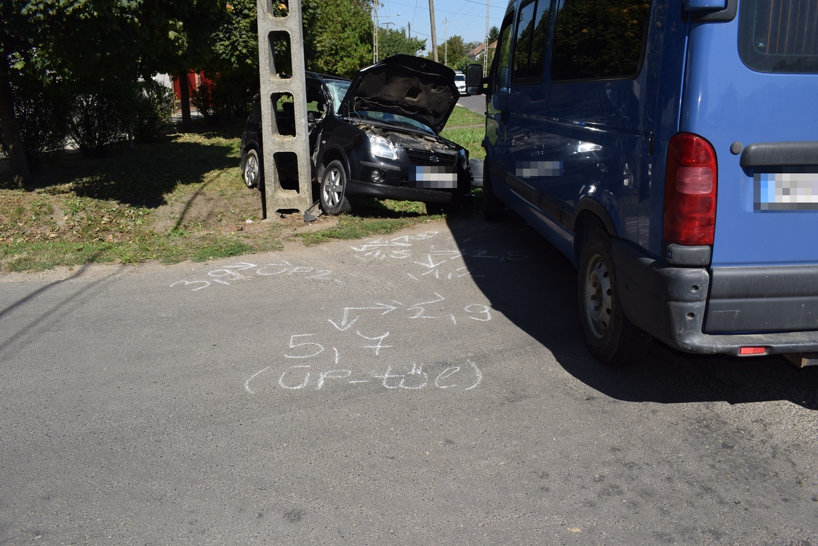 A két személygépkocsi augusztus 29-én reggel a Mezőhegyesi és a Kereszt utca találkozásánál ütközött össze. A balesetben ketten könnyebben megsérültek.