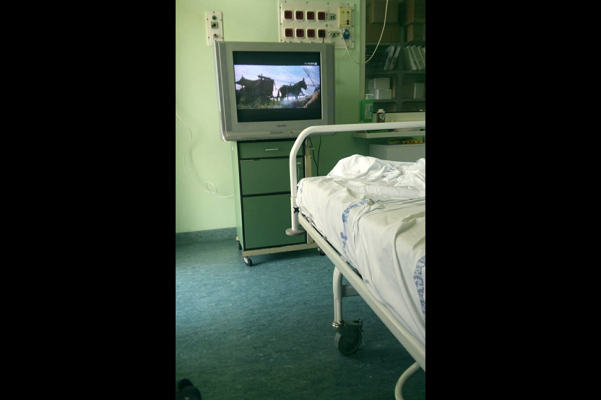 A képen látható kórterem is szubintenzív, ahol azért nincs tévé, mert ez a kórterem súlyos állapotú betegek részére van kialakítva. Jelenleg a többi kórterem foglaltsága miatt helyeztük el ebben a beteget, aki már kapott öltöző szekrényt és tv-t is.”
