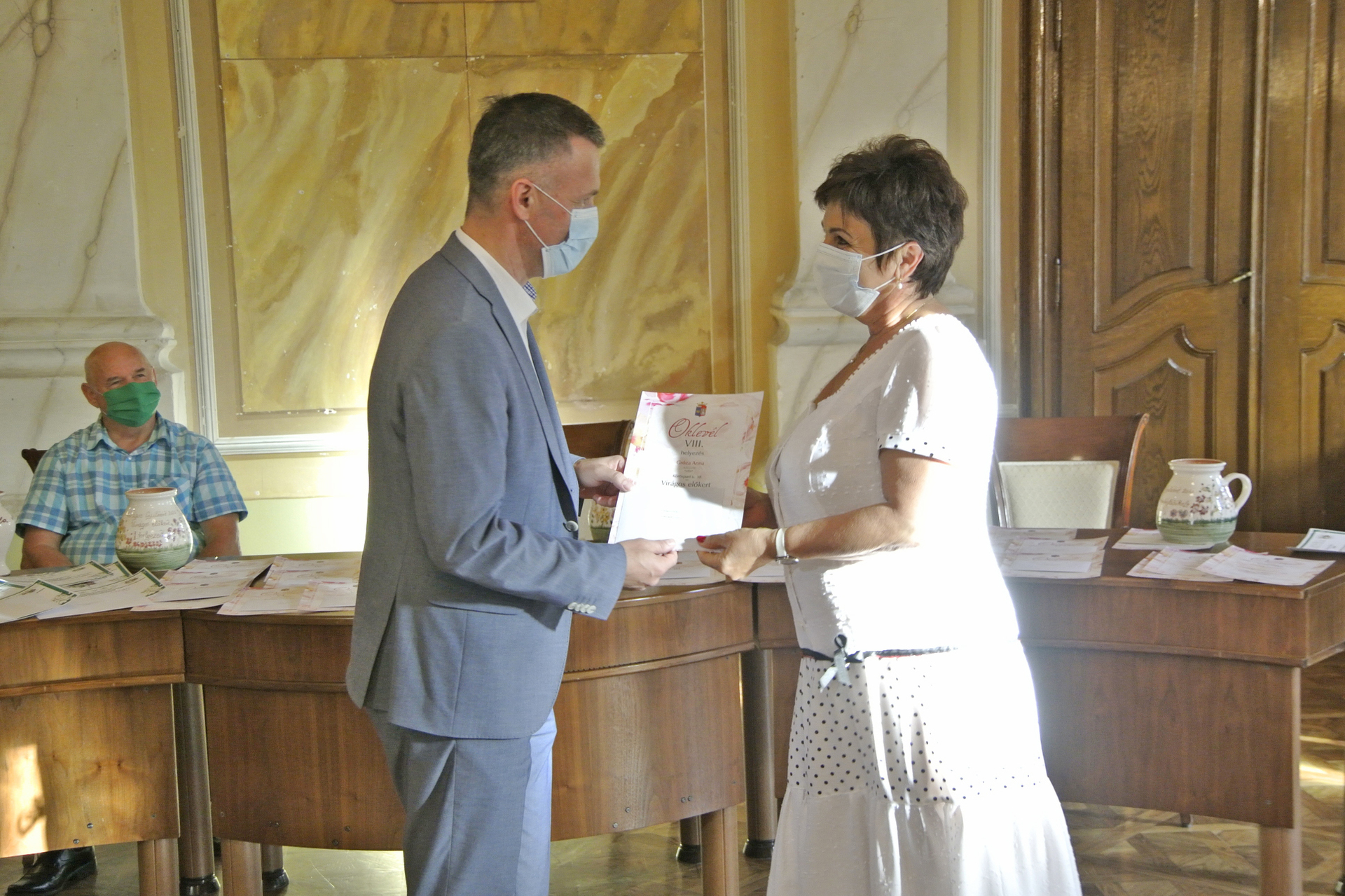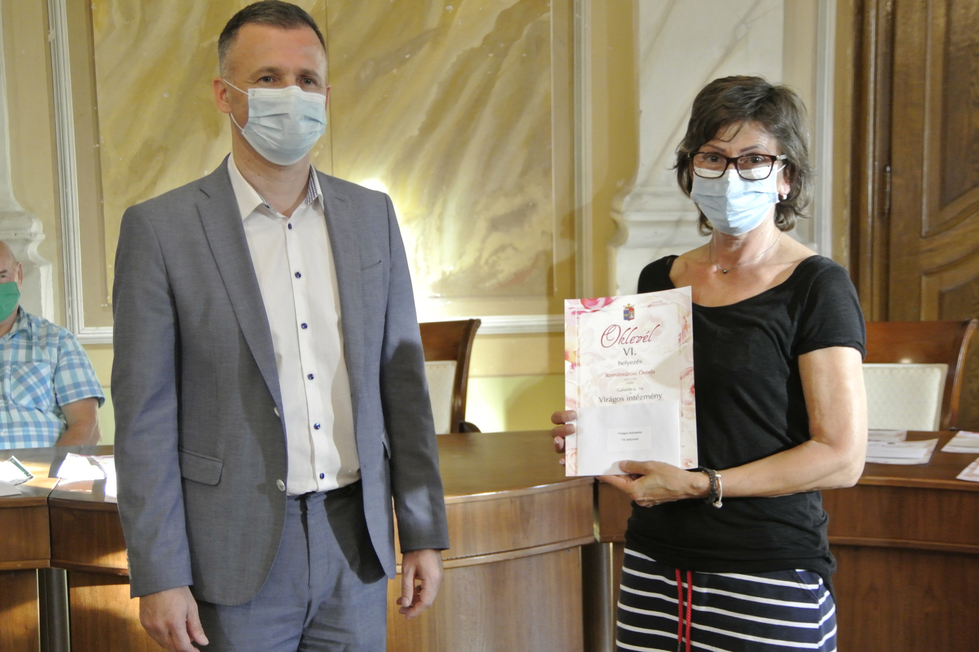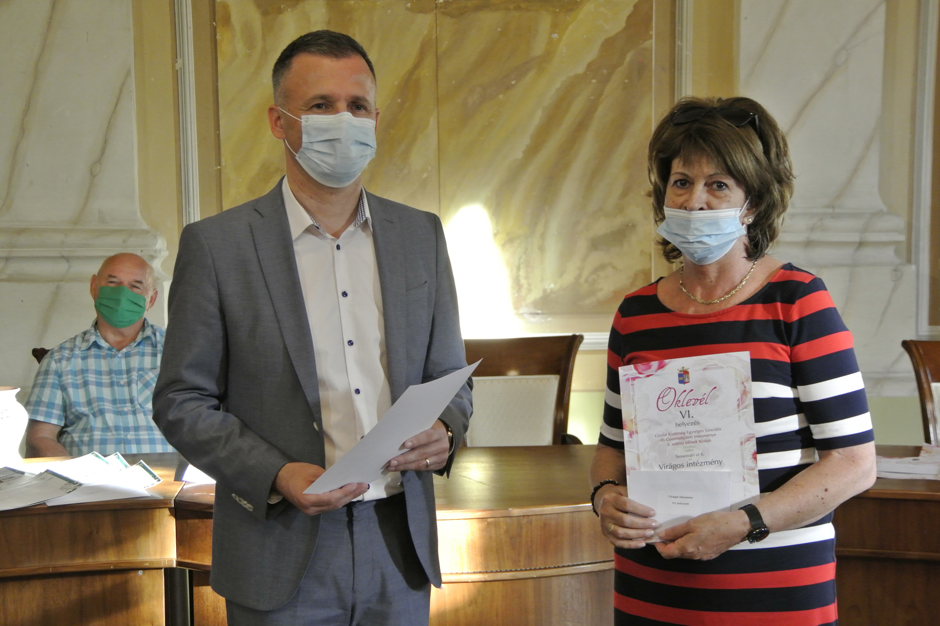 A köszöntő után következett a virágosítási verseny és a legszebb konyhakertek díjainak átadása, majd tolmácsolták Sári Kovács Szilvia, a legszebb konyhakertek verseny ötletgazdájának levelét, valamint oklevelet nyújtottak át a zsűrizéséért Pomázi Ferencnek és Werner Györgynek, valamint Hajnal Editnek a koordinálásért és szervező munkáért.
