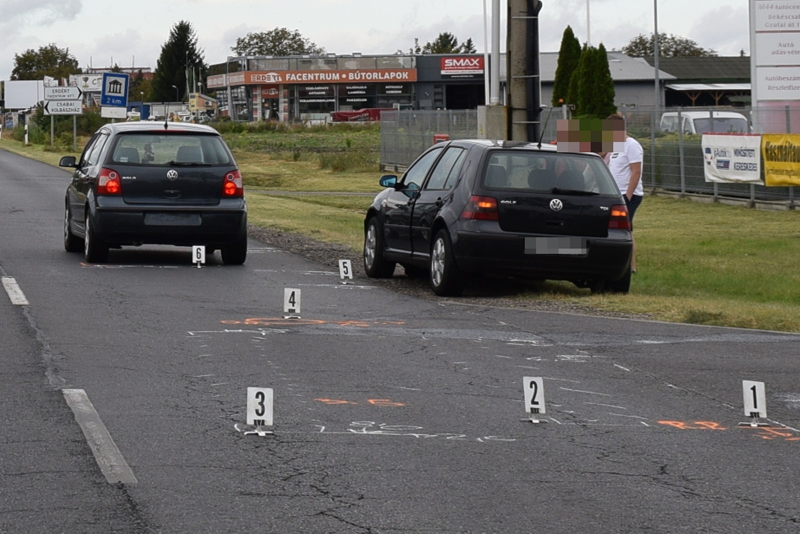 Két személyautó ütközött össze Békéscsabán, a Gyulai úton. Az egyik jármű utasa könnyebben megsérült.