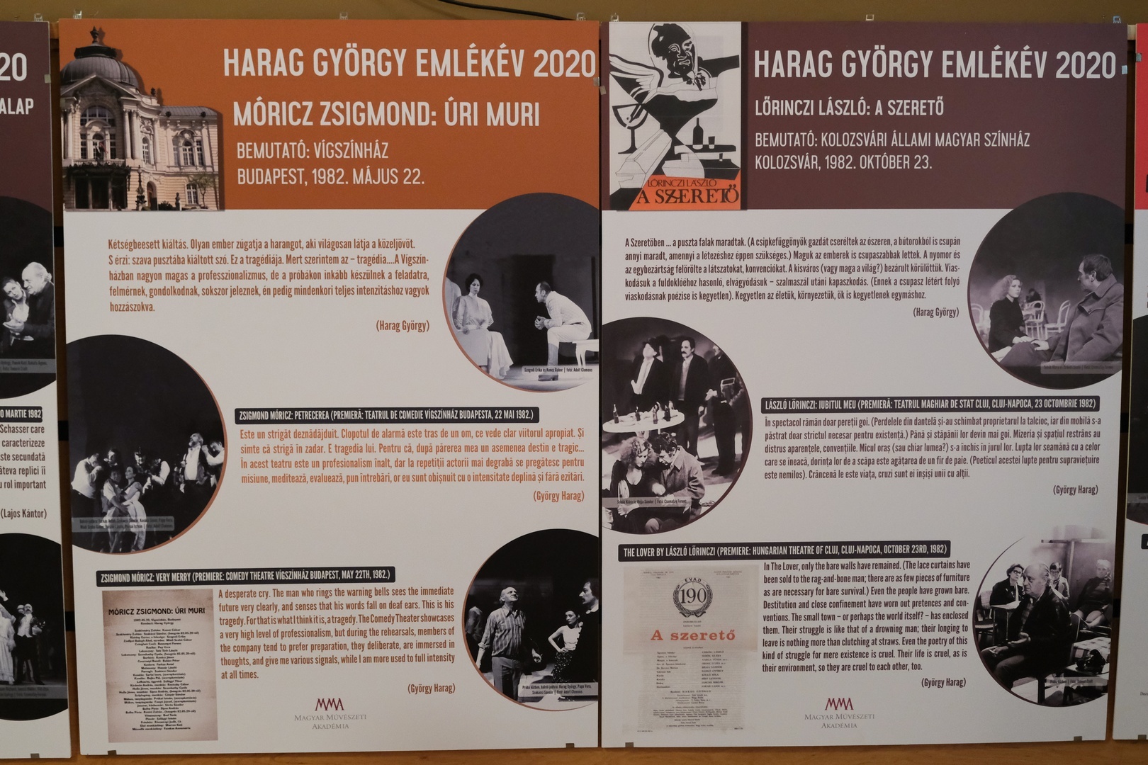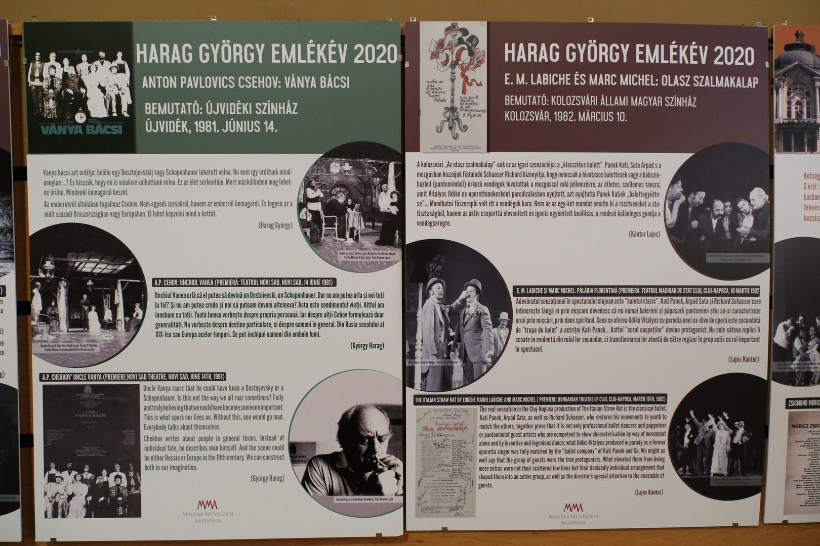 Elmondta: a Kolozsvári Állami Magyar Színház egykori főrendezőjének életművét negyven tablón, három nyelven mutatják be, fényképek, grafikák és korabeli dokumentumok segítségével. Hozzátette: a vándorkiállítást az összes településre elviszik, ahol Harag György alkotott.