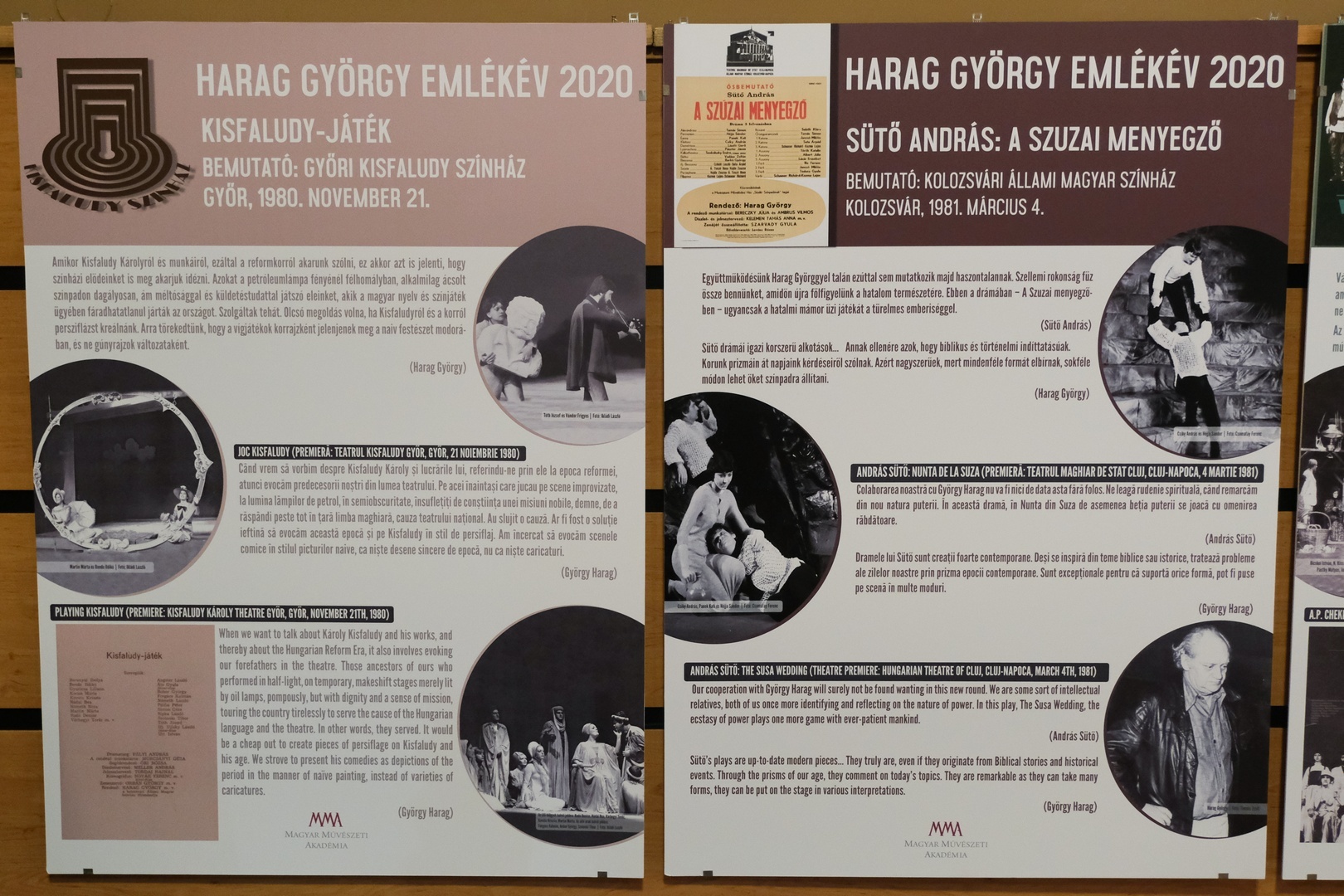 Tablókiállítással indult útjára október 1-jén a Magyar Művészeti Akadémia (MMA) által szervezett Harag György-emlékév a Gyulai Várszínházban. Az erdélyi magyar színházi rendező munkásságát bemutató vándortárlat a későbbiekben Győrben, Budapesten és több határon túli településen is látható lesz.