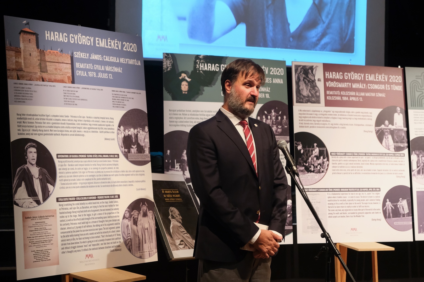 „Harag György életműve felemel minket veszteségeinkből, mint ahogy ő maga is felülemelkedett minden veszteségén” – fogalmazott a főtitkár. Hangsúlyozta: a színházi rendező egyszerre volt magyar és a legtermészetesebb módon európai, aki az egyetemes kultúrát képviselte.