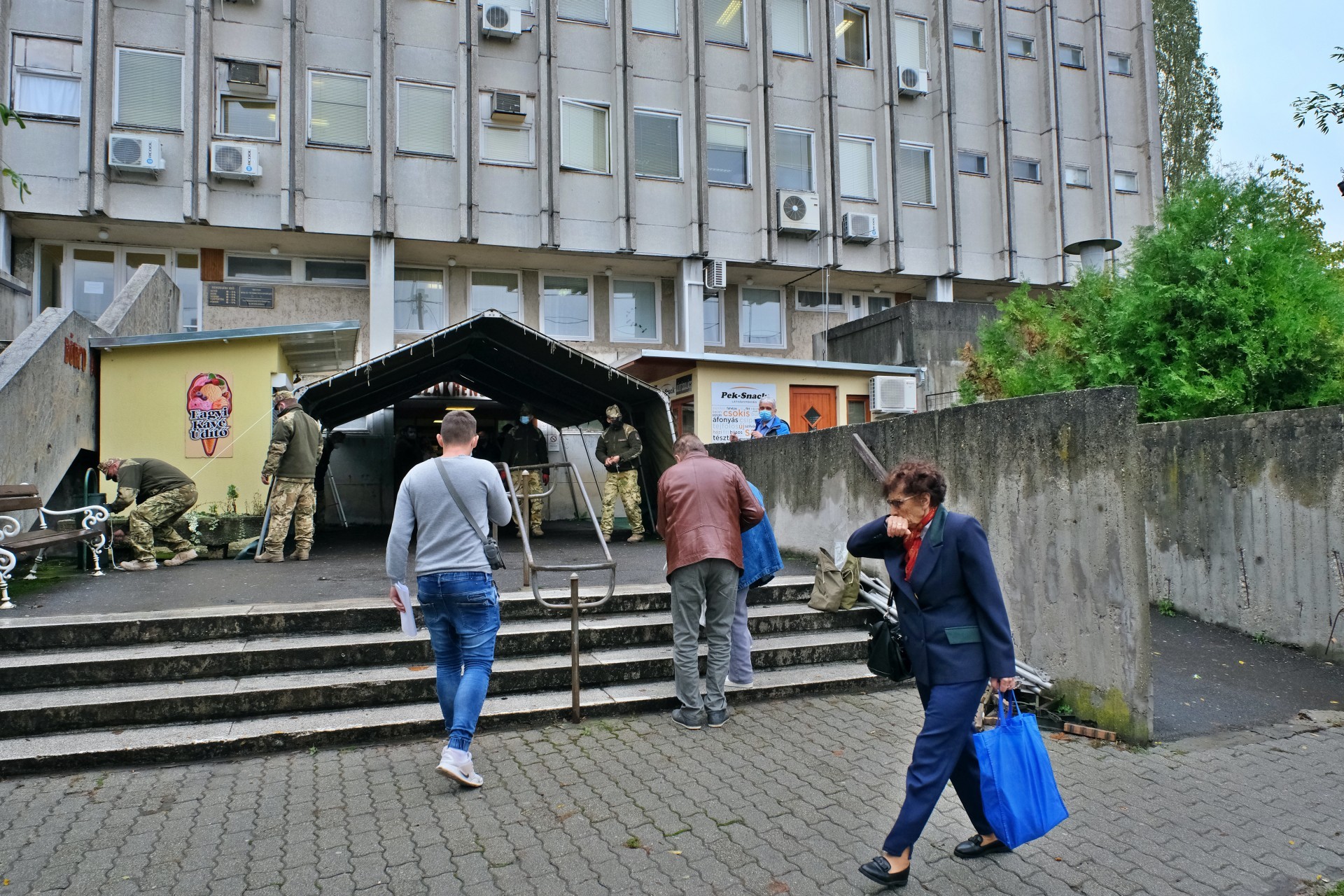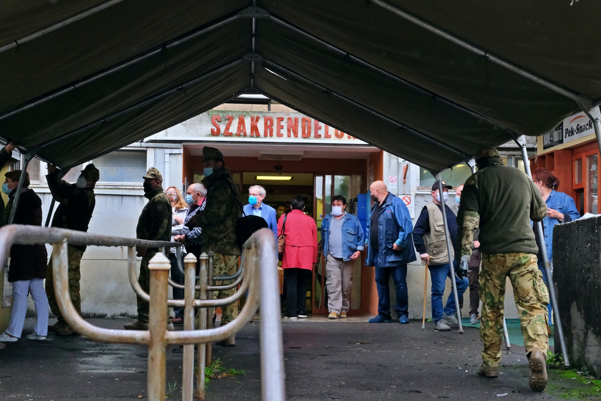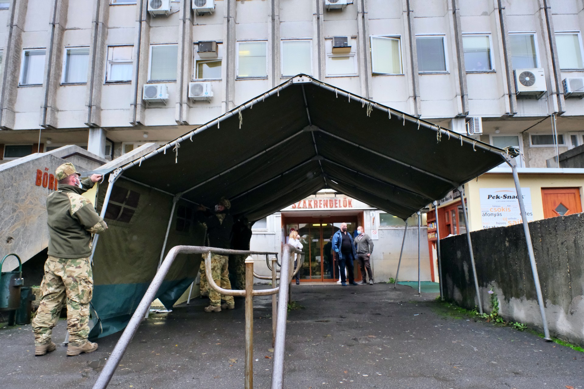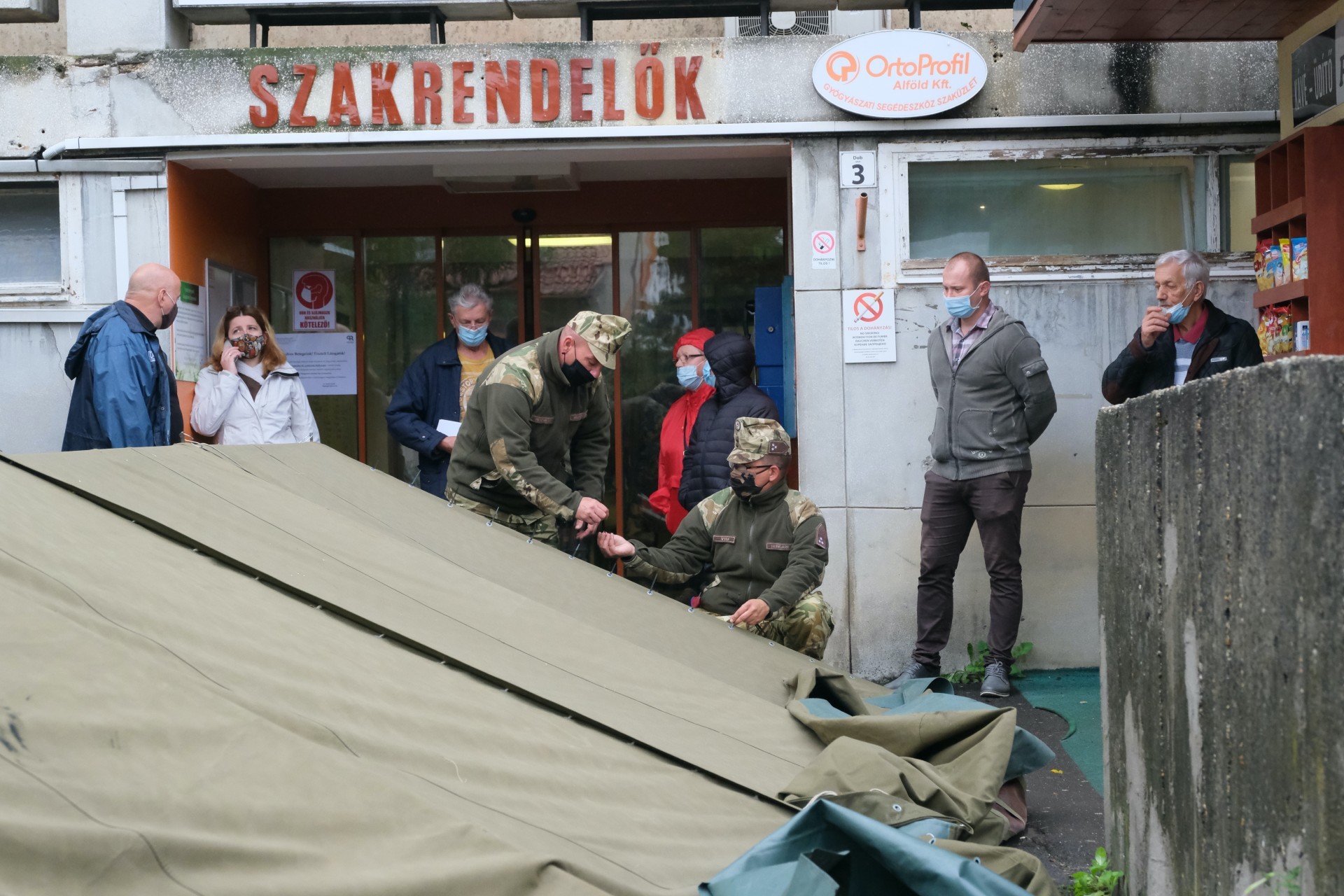 Katonai sátrat állított fel a gyulai tagkórház szakrendelője elé a Magyar Honvédség szentesi műszaki ezrede október 8-án, hogy megóvja az előszűrésre várakozókat az időjárás viszontagságaitól.