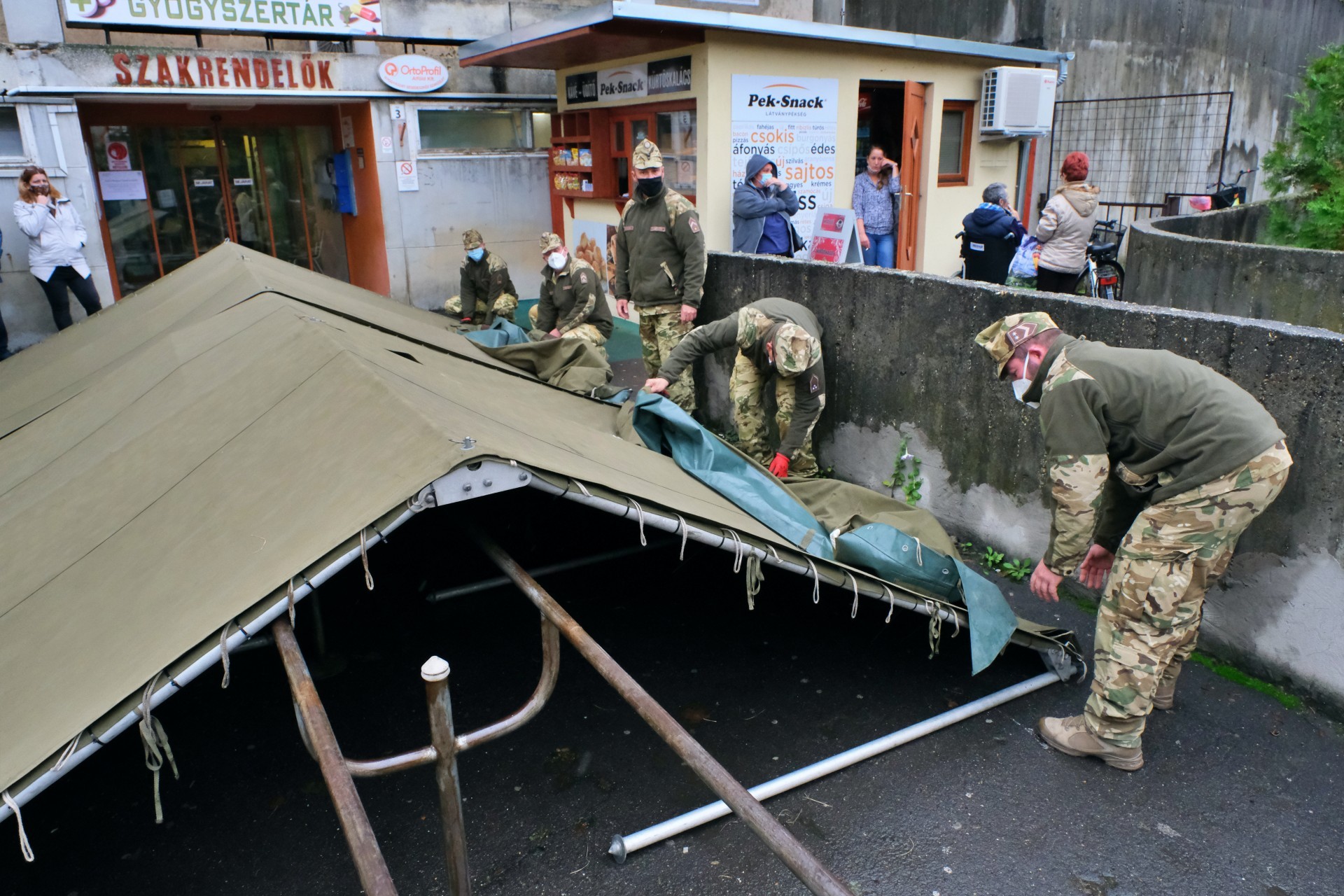 Varga Tamás főhadnagy lapunknak elmondta: a sátrat a kórház kérésére telepítették a Magyar Honvédség 37. II. Rákóczi Ferenc Műszaki Ezredének katonái.