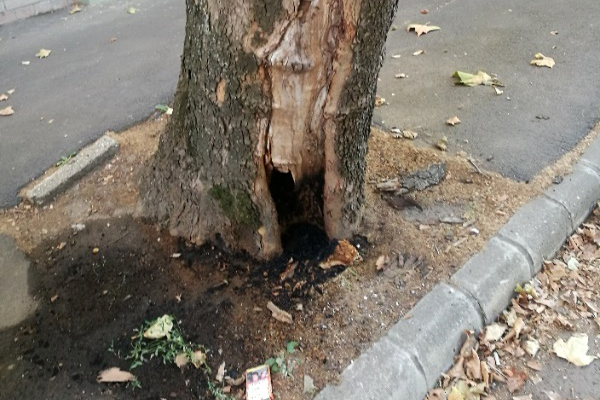 Meggyújtottak egy korhadt fát szeptember 24-én a Béke sugárúton, a károsodás miatt ki kell vágni a növényt – tájékoztatta lapunkat a polgármesteri hivatal.