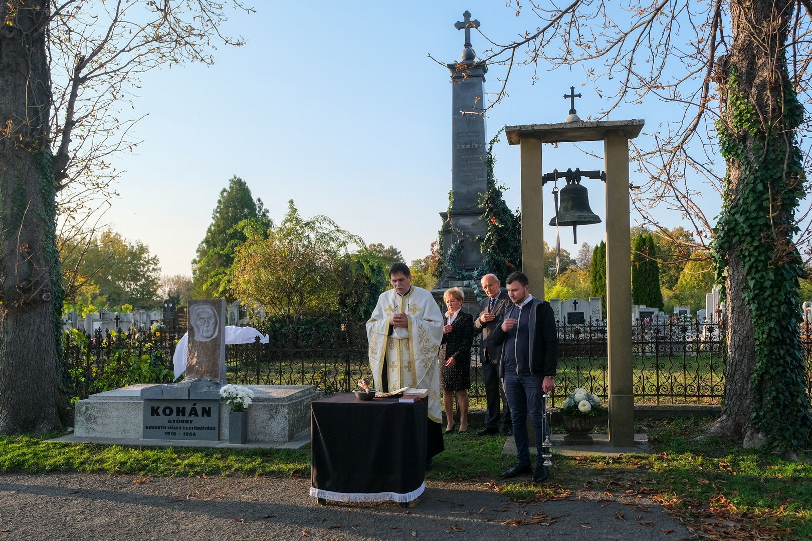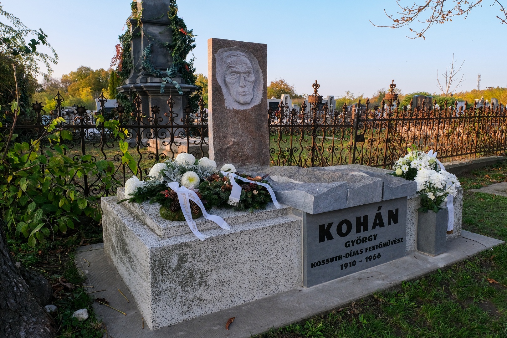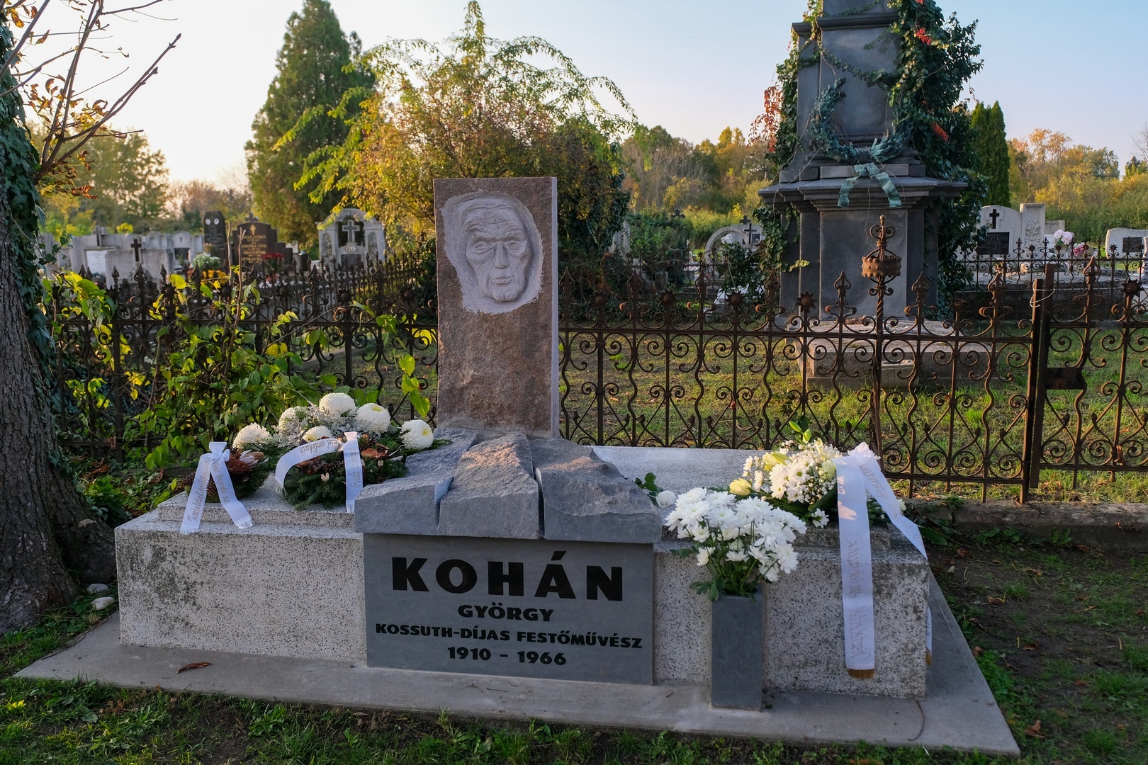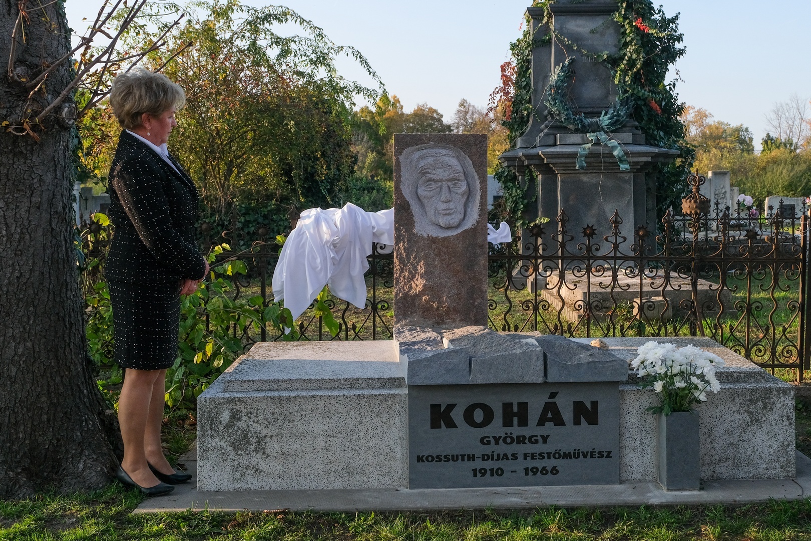 Hozzátette: a család barátját, Széri Varga Gézát kérték meg arra, hogy alkossa meg a síremléket. Teljesen szabad kezet adtak a számára, hiszen ismerte a festőt, a stílusát és egyéniségét, hogy olyan síremléket készítsen, amely jellemző Kohánra.
