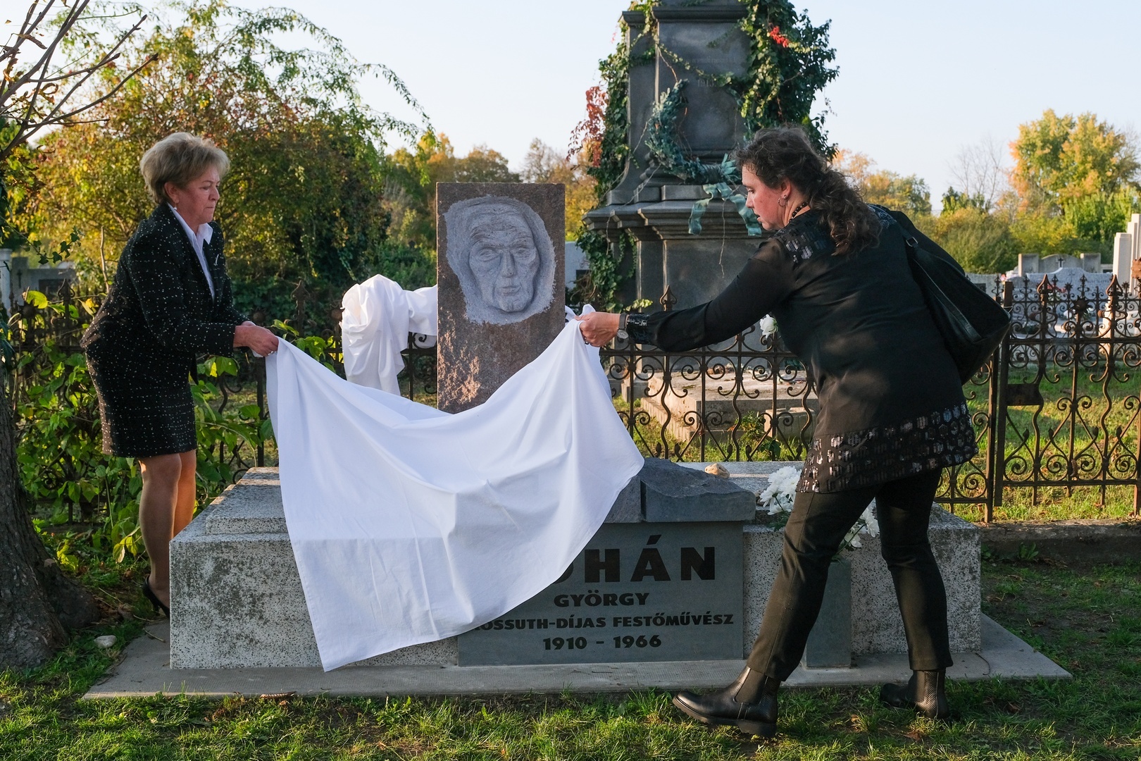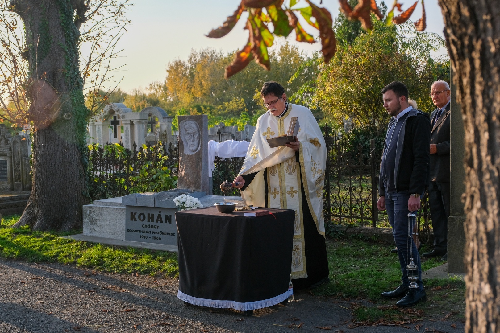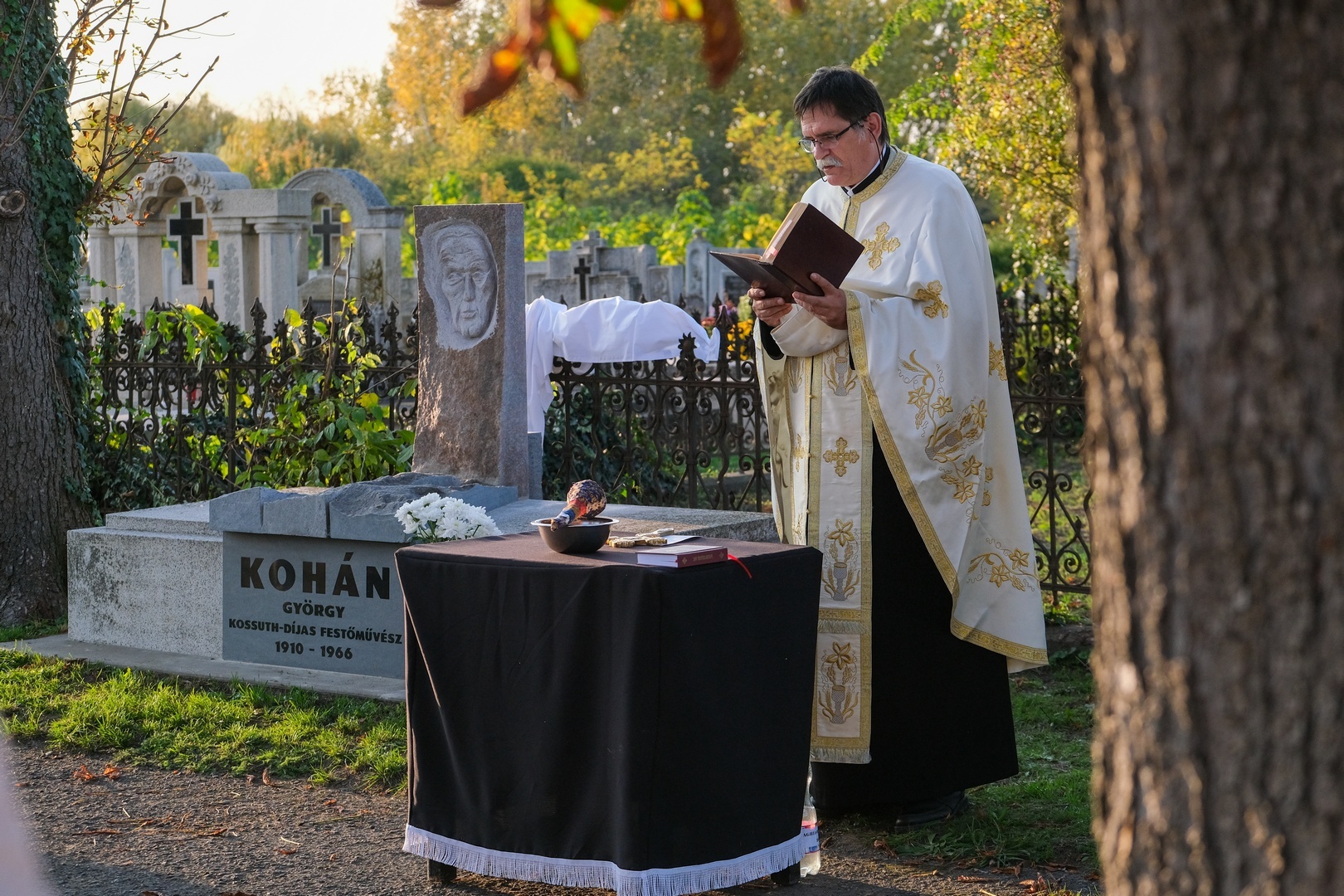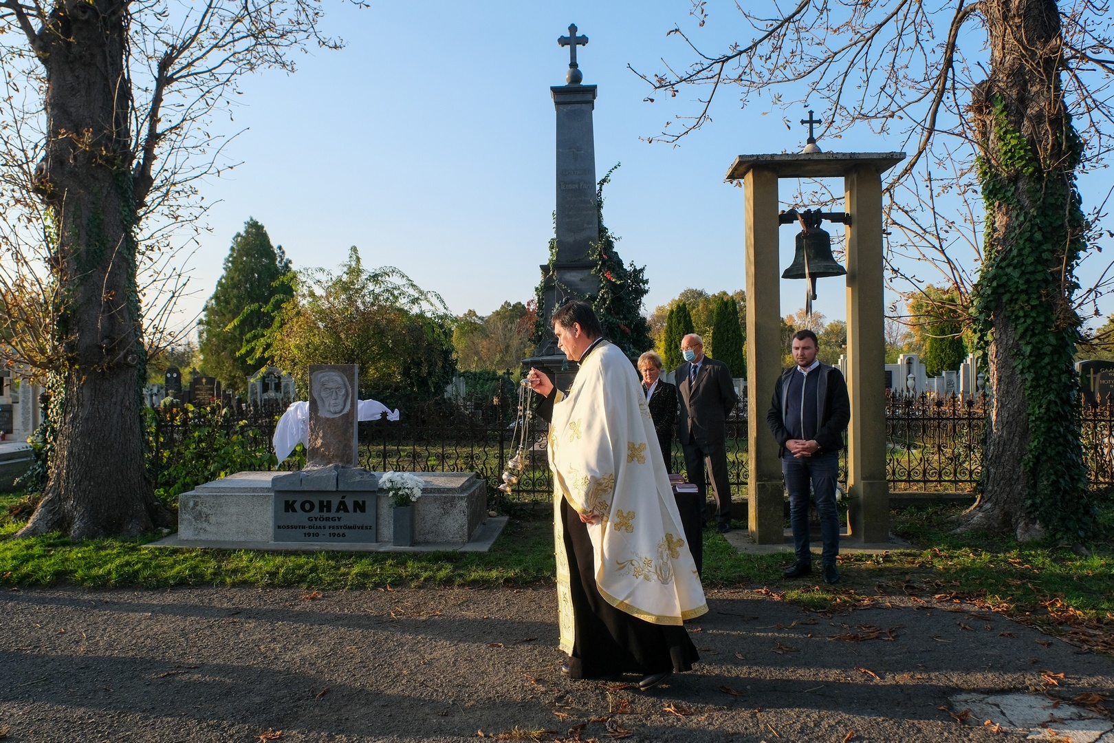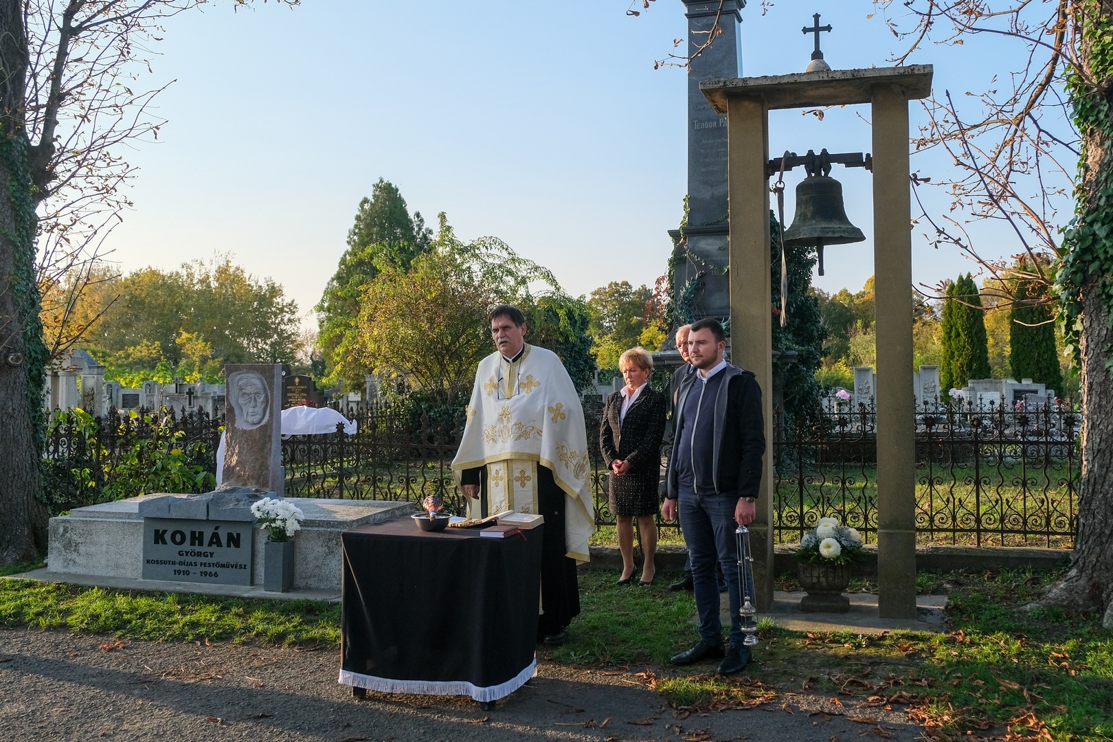 Hozzátette: a család barátját, Széri Varga Gézát kérték meg arra, hogy alkossa meg a síremléket. Teljesen szabad kezet adtak a számára, hiszen ismerte a festőt, a stílusát és egyéniségét, hogy olyan síremléket készítsen, amely jellemző Kohánra.