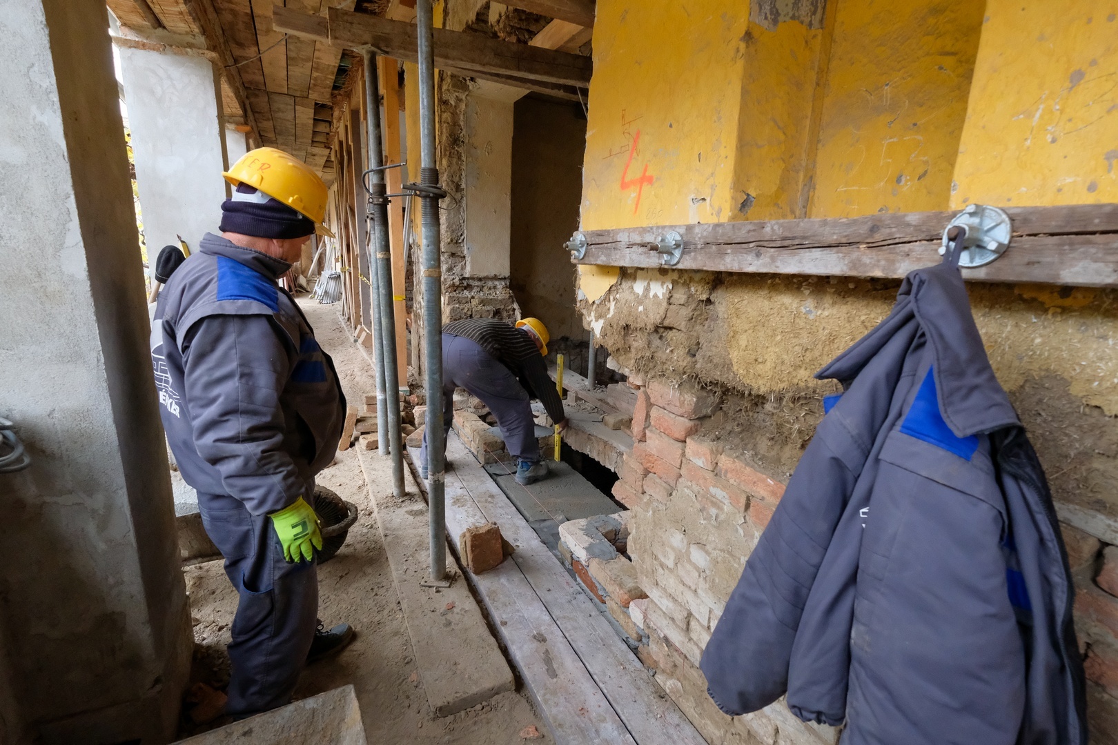 Mint mondta, kicserélték a tornácoszlopsort, a végén járnak az alap megerősítésének, valamint nemrég kezdték el a falak szigetelését. Elbontották az egyik pince boltozatát, ezt hamarosan újjáépítik, továbbá végeztek az egyik tűzfal megerősítésével is.