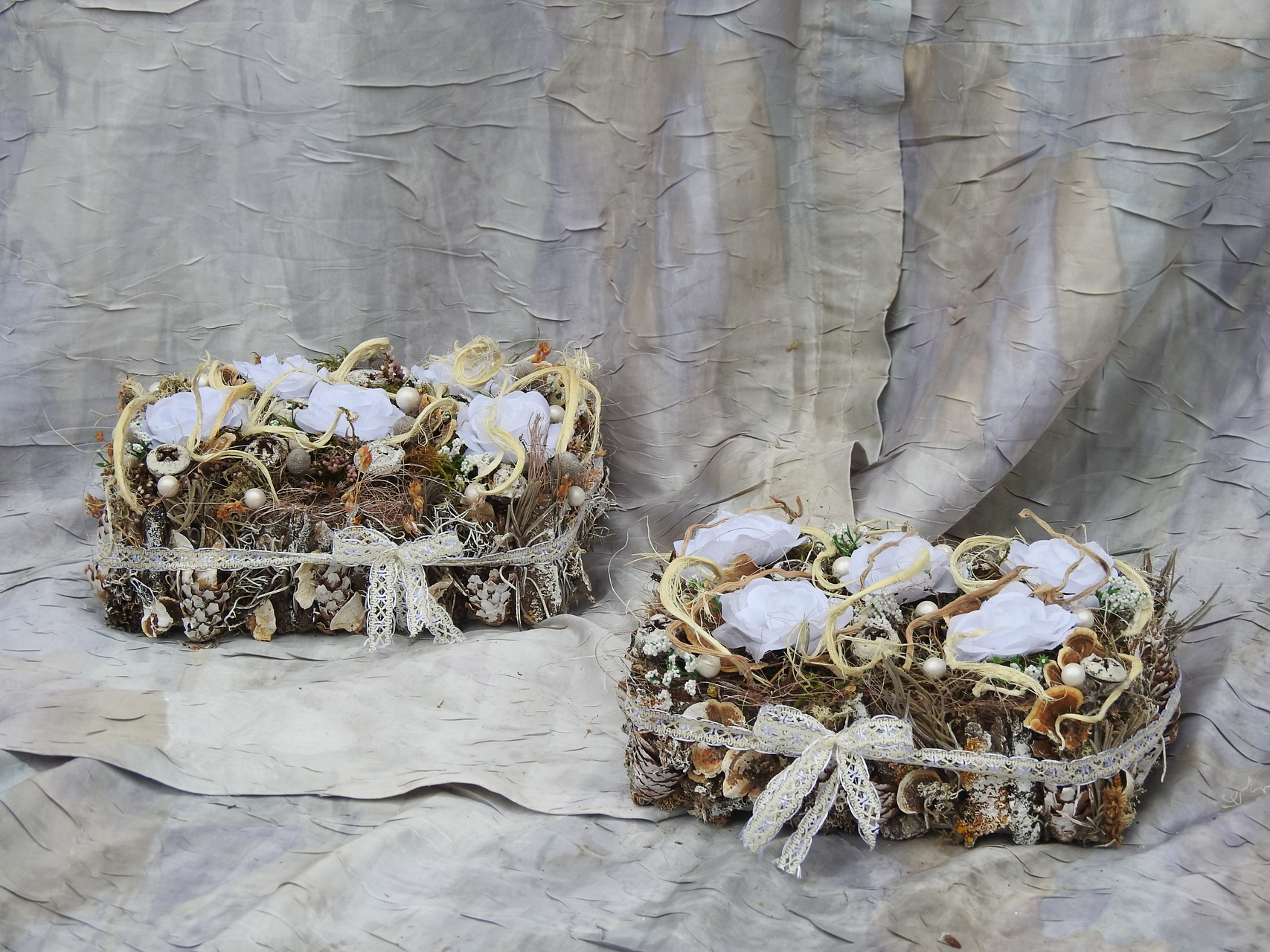Elmondta: az időjáráshoz illő, télies virágdíszeket készítettek: fehér, zúzmarás koszorúkat és a téli, csendes természetet megjelenítő zuzmós, elegáns, fehér virágkompozíciókat.