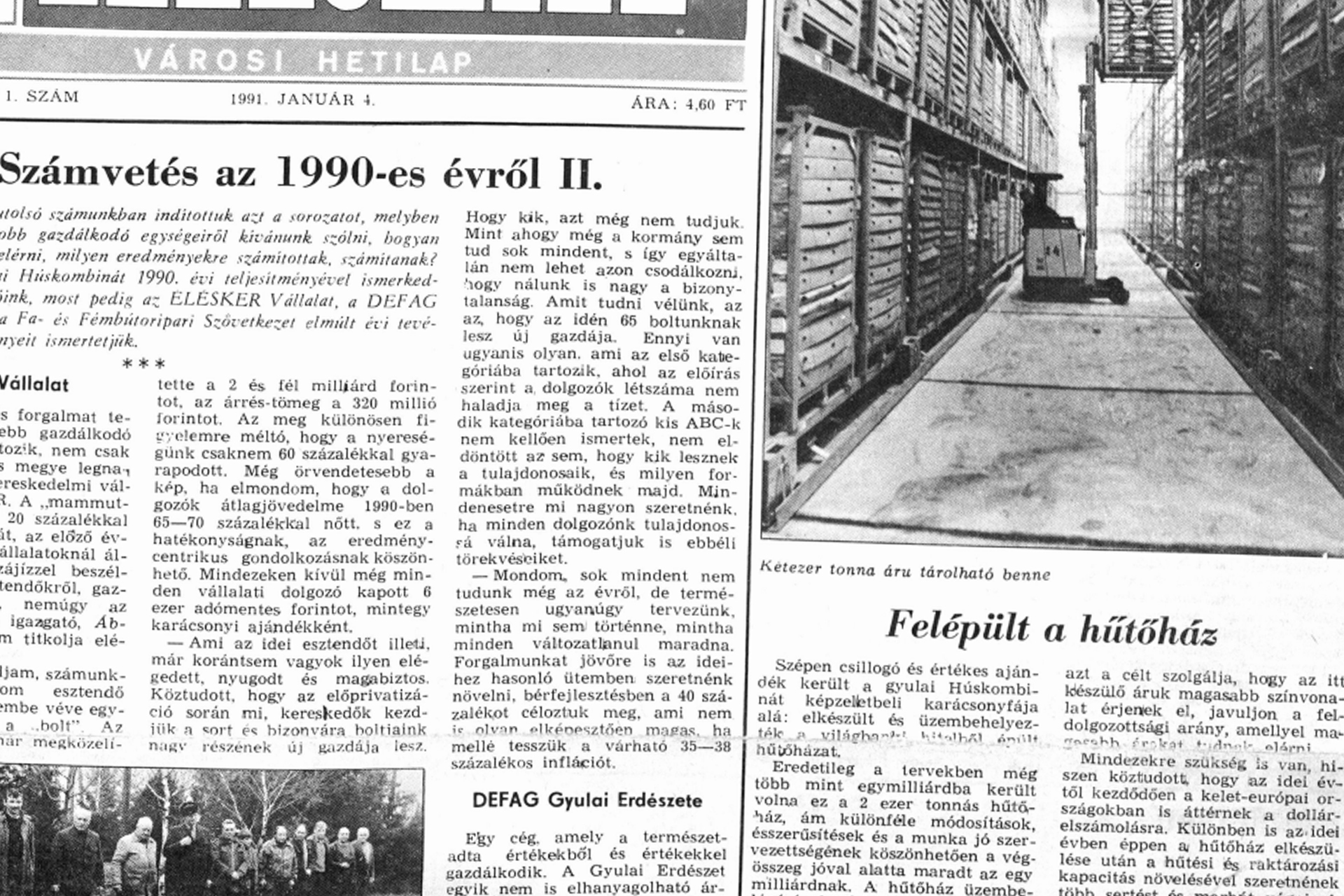 Szépen csillogó és értékes ajándék került a Gyulai Húskombinát képzeletbeli karácsonyfája alá: elkészült és üzembe helyezték a világbanki hitelből épült hűtőházat. Eredetileg a tervekben még több mint egymilliárdba került volna ez a 2 ezer tonnás hűtőház, ám különféle módosításoknak, ésszerűsítéseknek és a munka jó szervezettségének köszönhetően a végösszeg jóval alatta maradt az egy milliárdnak. A hűtőház üzembelépésével párhuzamosan és járulékosan egyéb korszerűsítéseket is végeztek (…)
