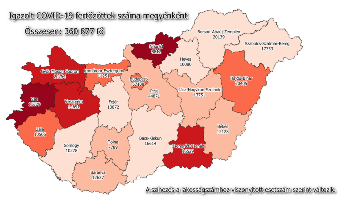 A kormányzati portálon azt írták: 360 877-re nőtt a Magyarországon azonosított fertőzöttek száma. Az elhunytaké 12 113-ra emelkedett, a gyógyultak száma 244 681.