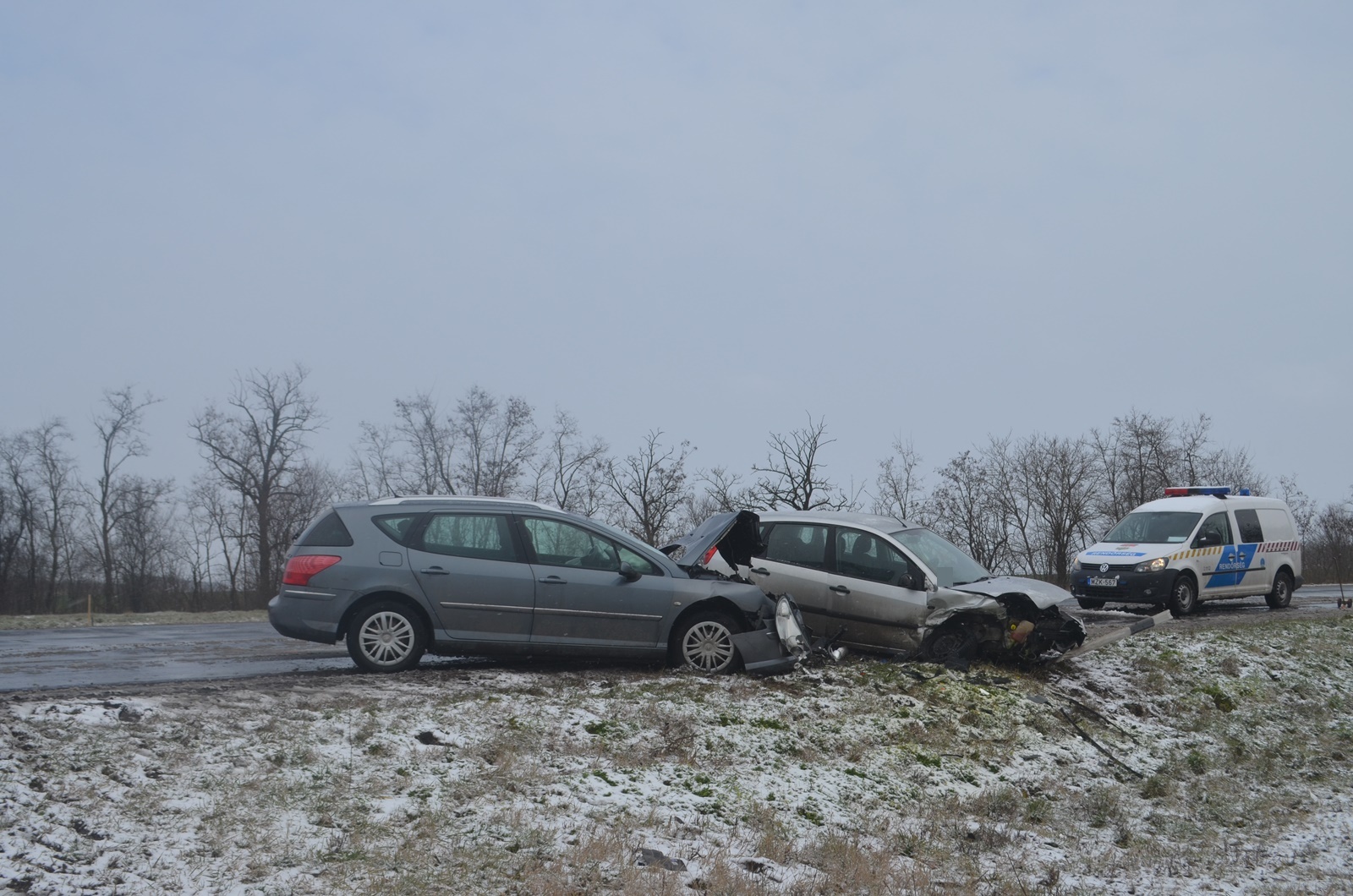 Összeütközött két személyautó január 31-én Csabaszabadi külterületén. A balesetben mindkét jármű vezetője könnyebben megsérült.
