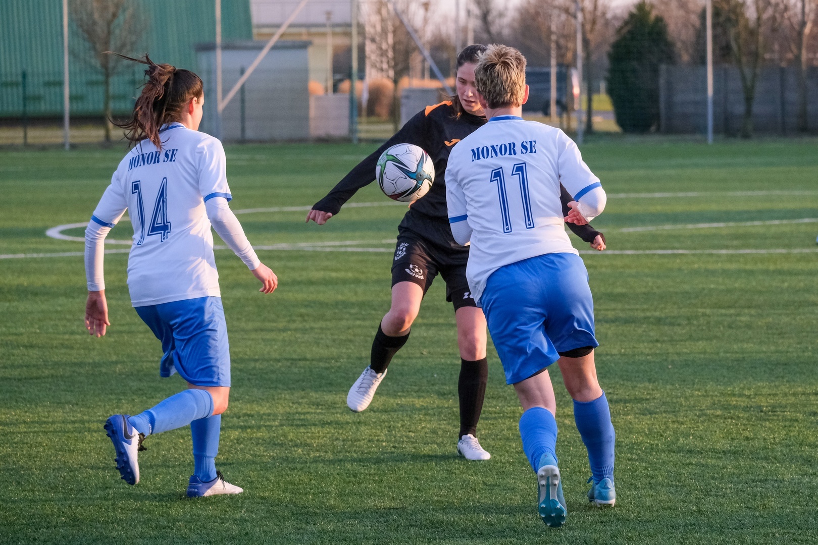 A második félidőben némileg feljavult az Amazonok játéka, de ezúttal nem úgy működött a gépezet, mint általában. A hazai csapat sem a középpályán, sem a támadó szekcióban nem hozta a formáját. Az 58. percben egy véleményes lesgólt adott meg a játékvezető, így máris kétgólos előnyre tett szert a monori gárda (0-2).