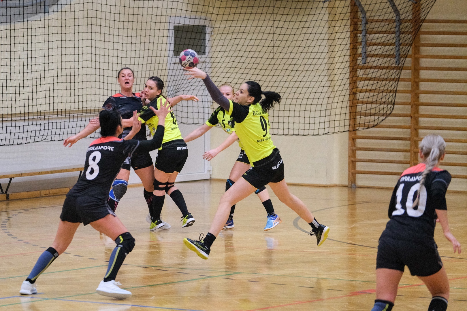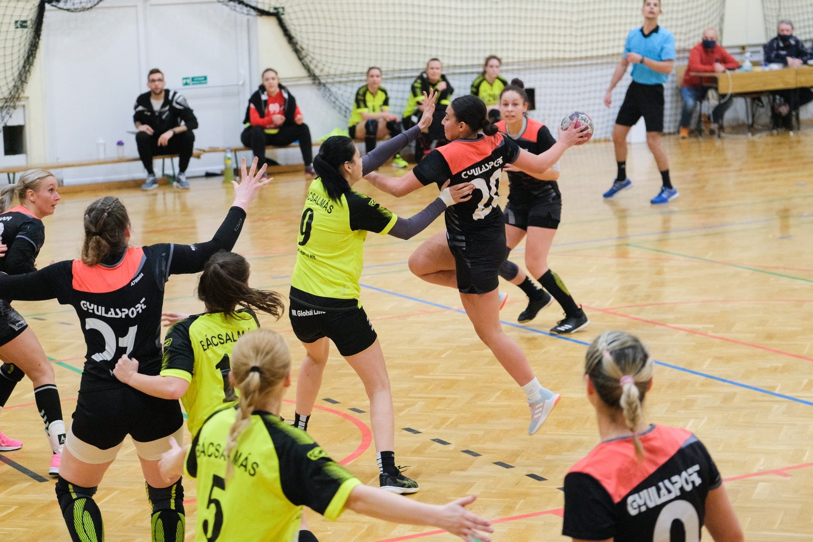 A riválisok főleg támadásban voltak erősek a találkozón, a védekezés és a kapusteljesítmény azonban mindkét oldalon gyengélkedett. Ennek megfelelően igazi adok-kapok alakult ki a félidőben, amelynek végén a Szögi Tímea és Csapó-Kovács Hajnalka vezette hazai gárda mehetett előnnyel pihenőre.