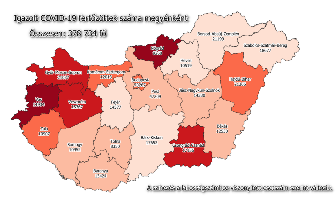 A kormányzati portálon azt írták: 378 734-re nőtt a Magyarországon azonosított fertőzöttek száma. Az elhunytaké 13 249-re emelkedett, a gyógyultak száma 283 282.
